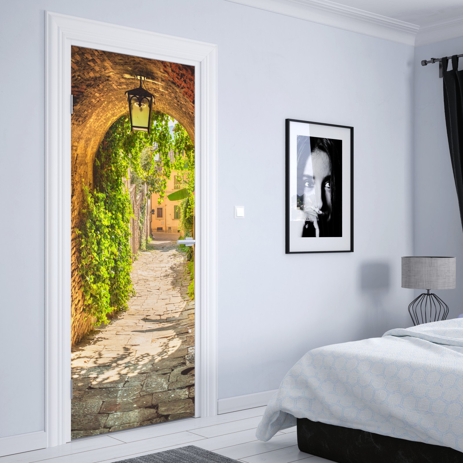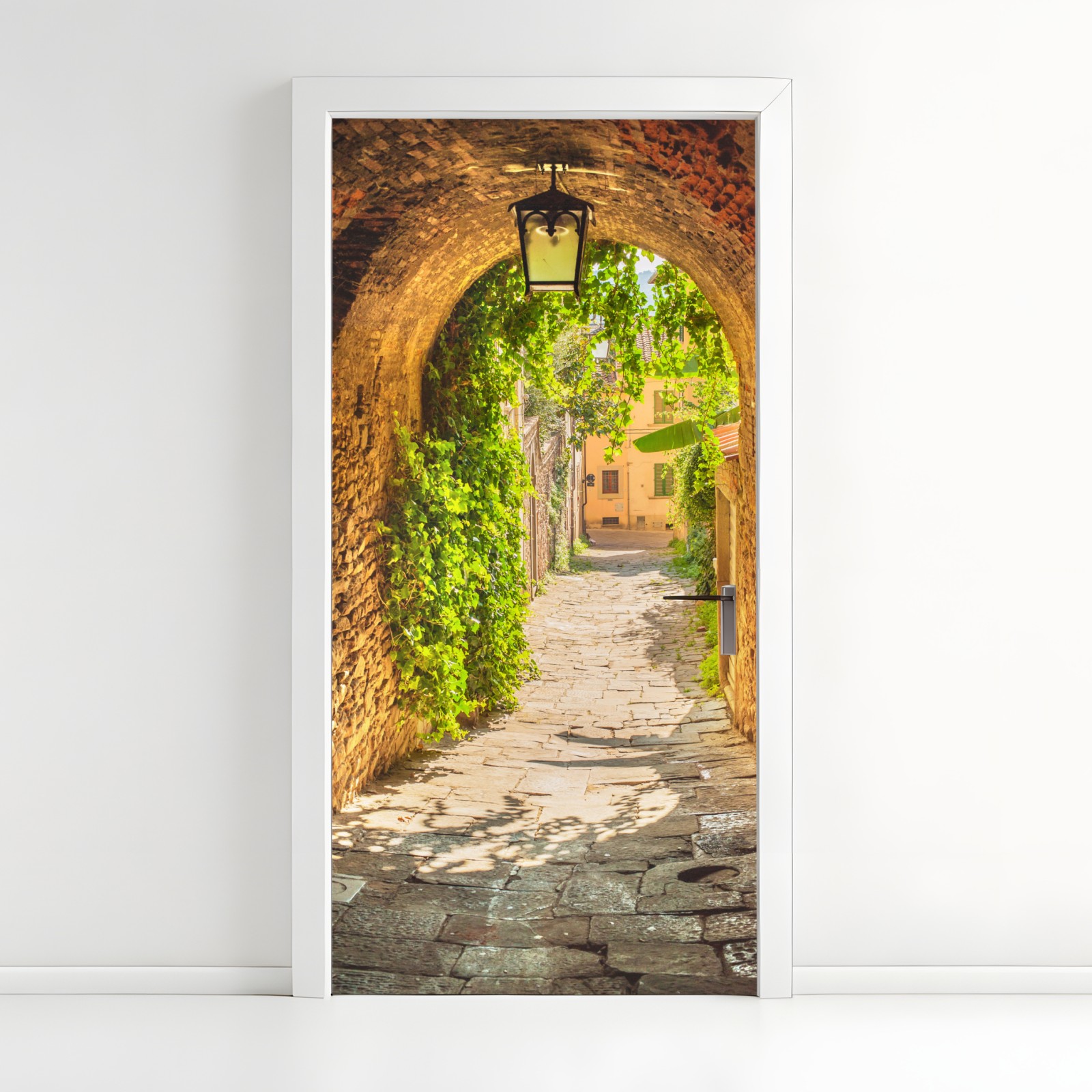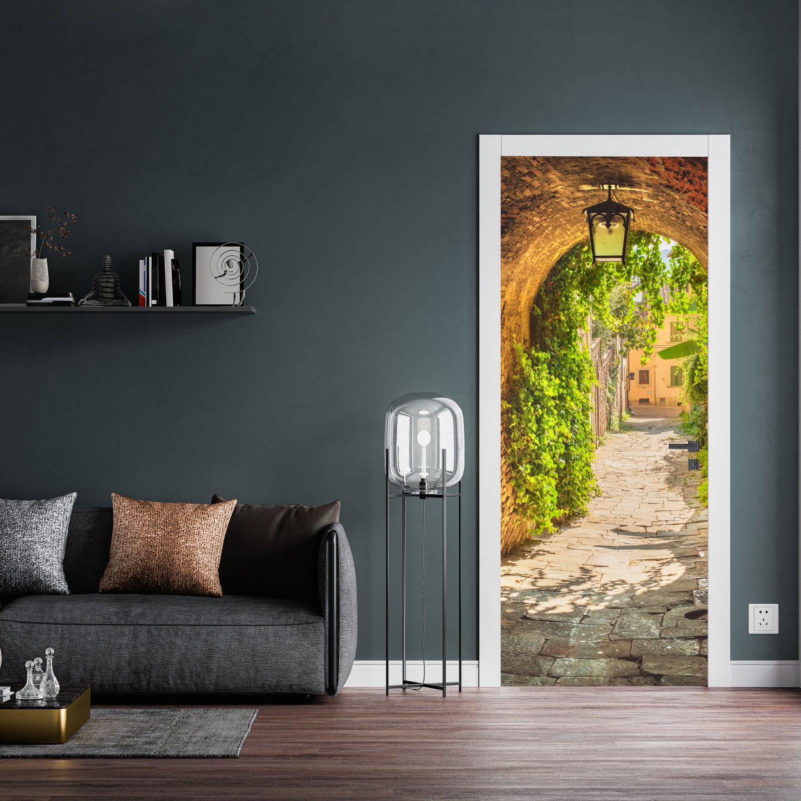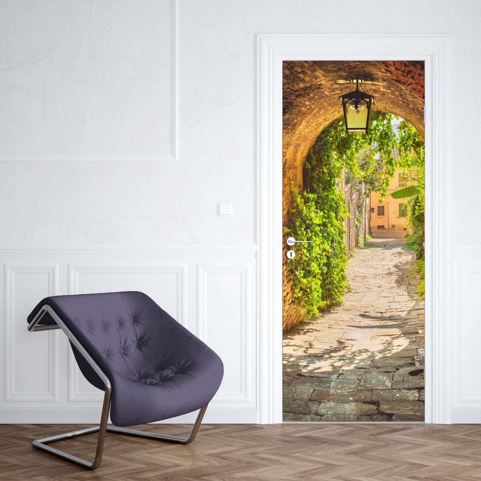 Naklejka na drzwi Słoneczna uliczka w Toskanii