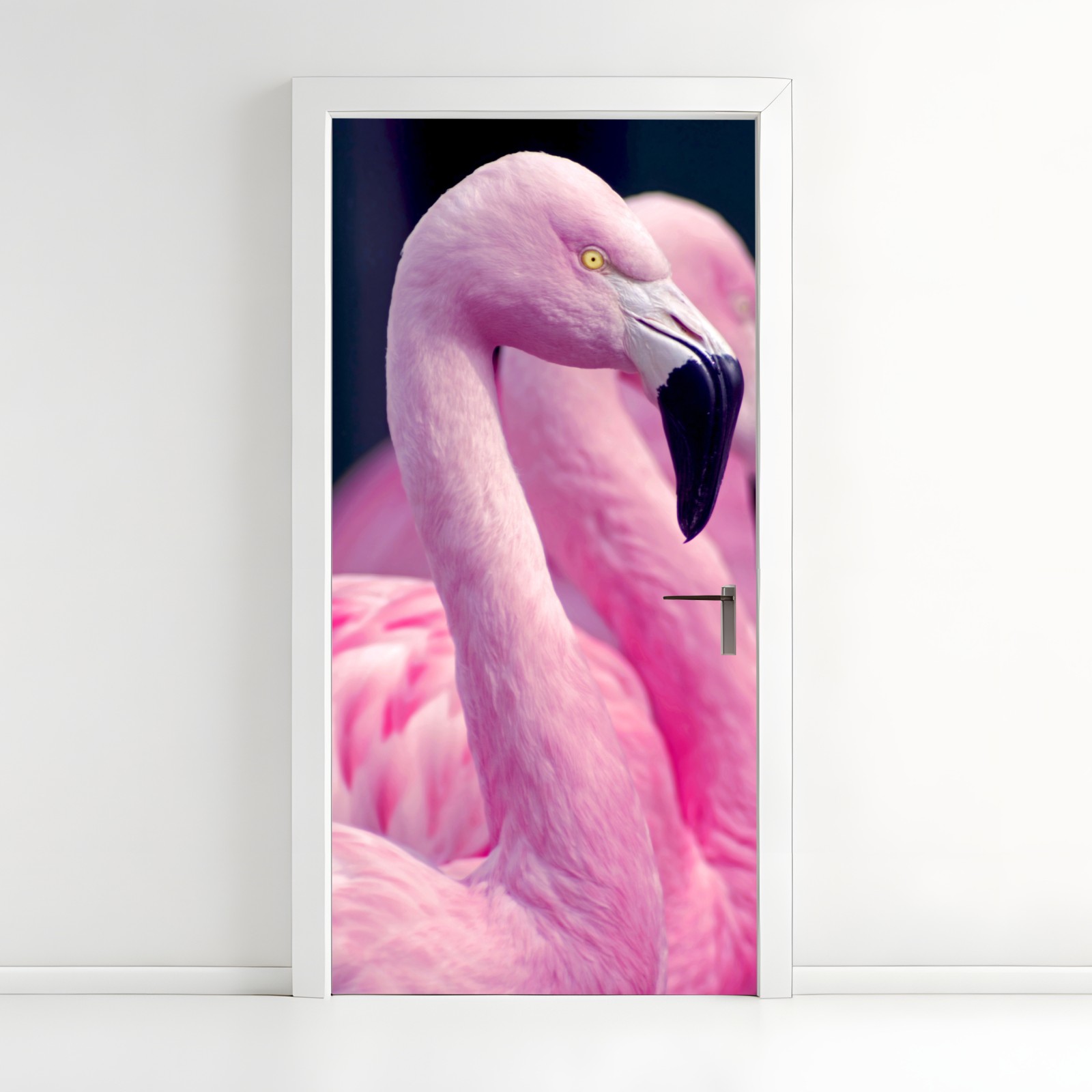 Naklejka na drzwi Delikatny portret różowego flaminga