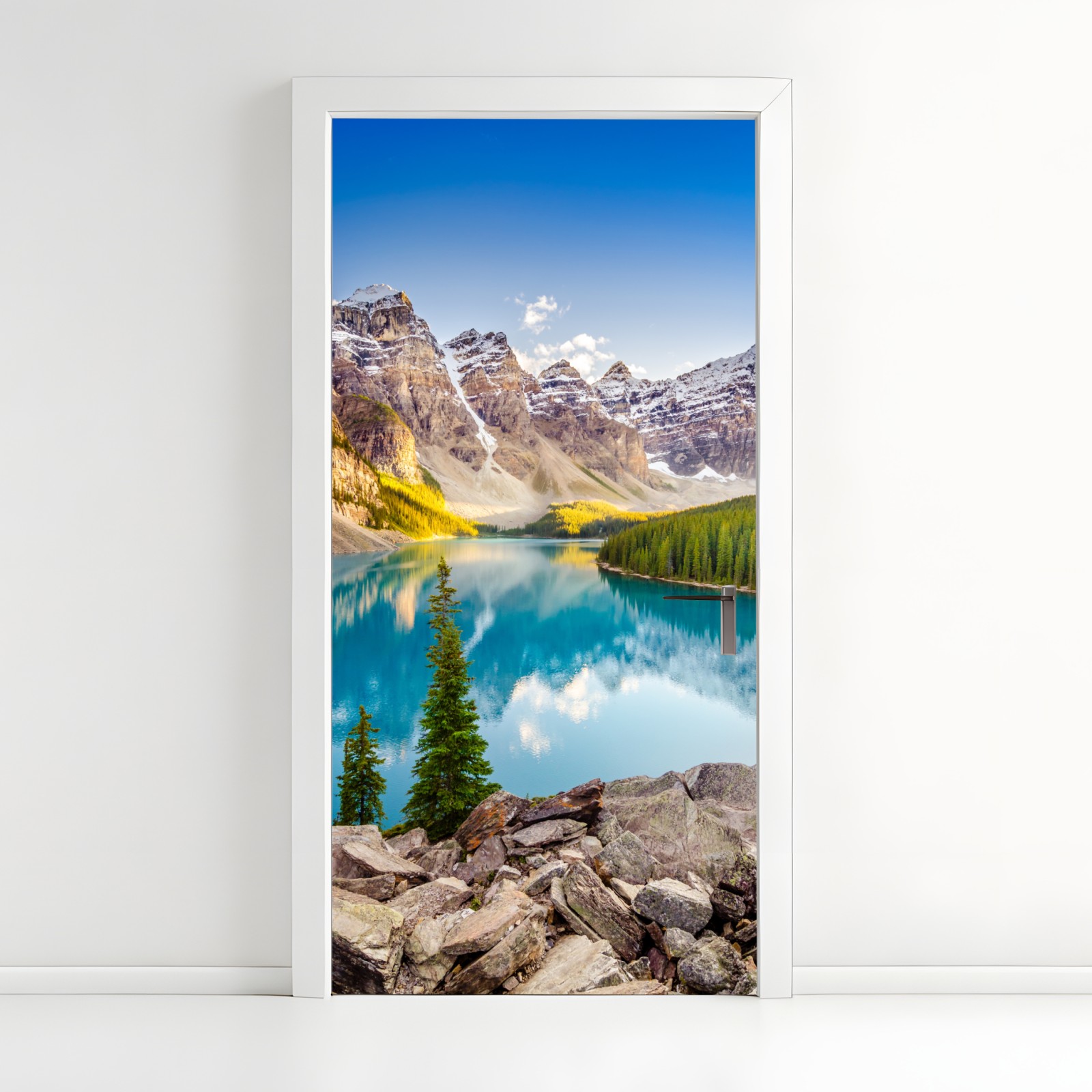 Naklejka na drzwi Słoneczne jezioro Moraine i górski widok