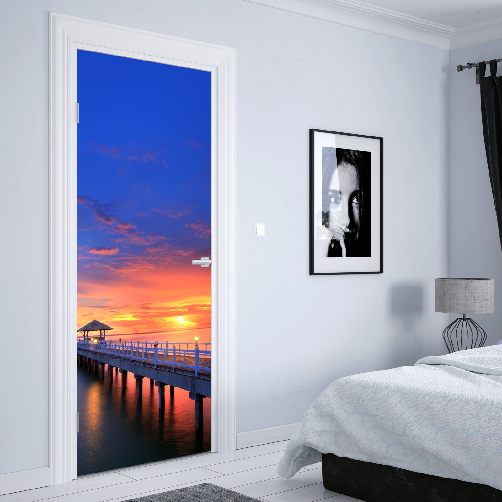 Naklejka na drzwi Molo o zachodzie słońca nad plażą
