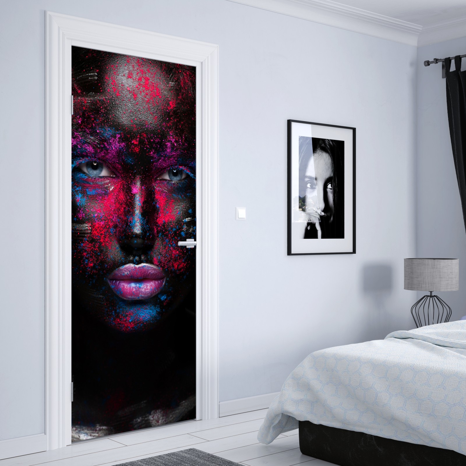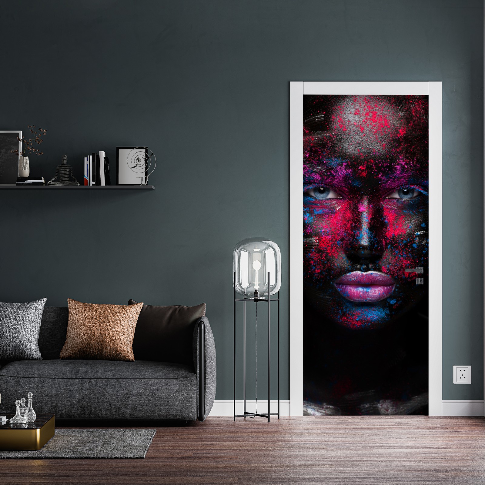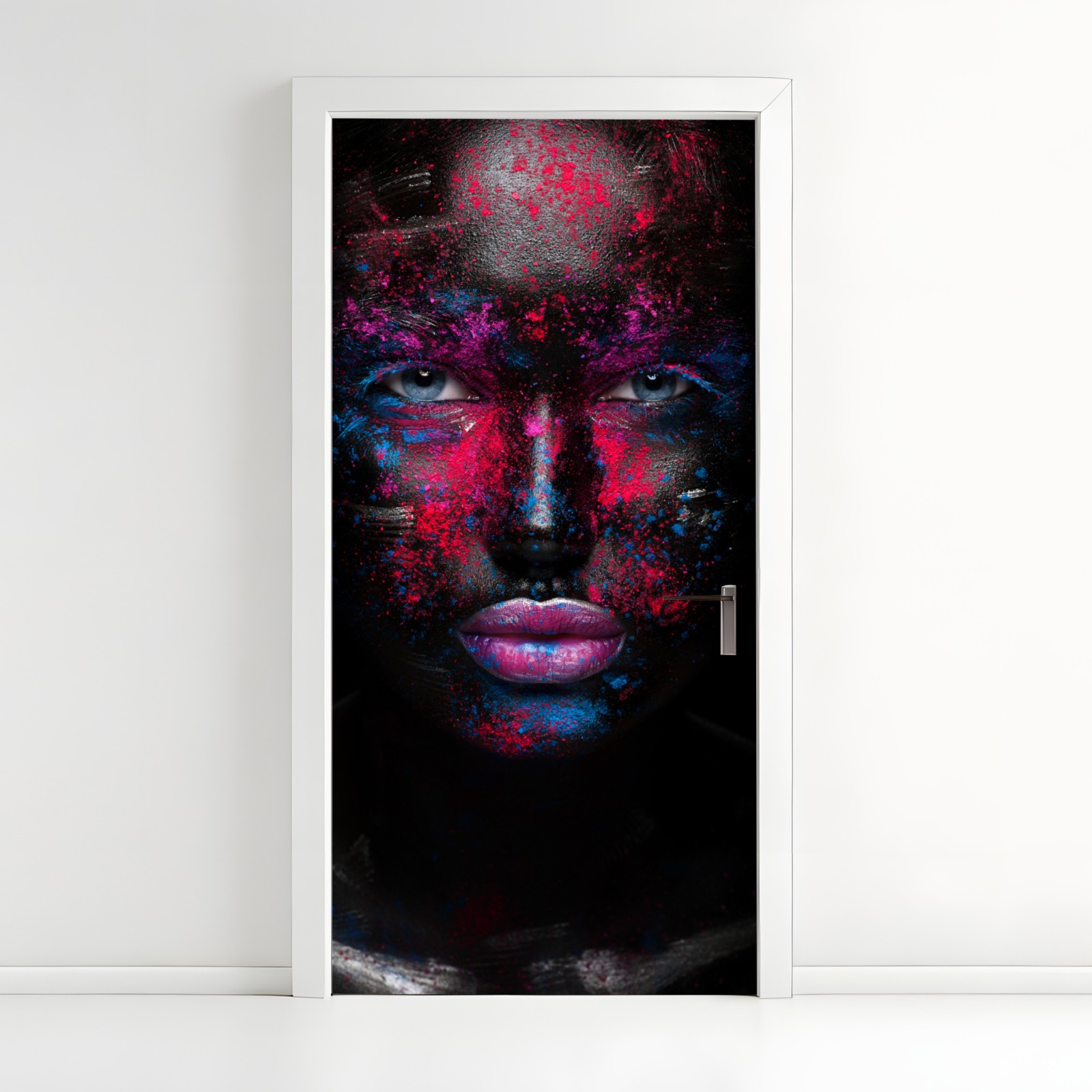 Naklejka na drzwi Dramatyczny neonowy portret twarzy