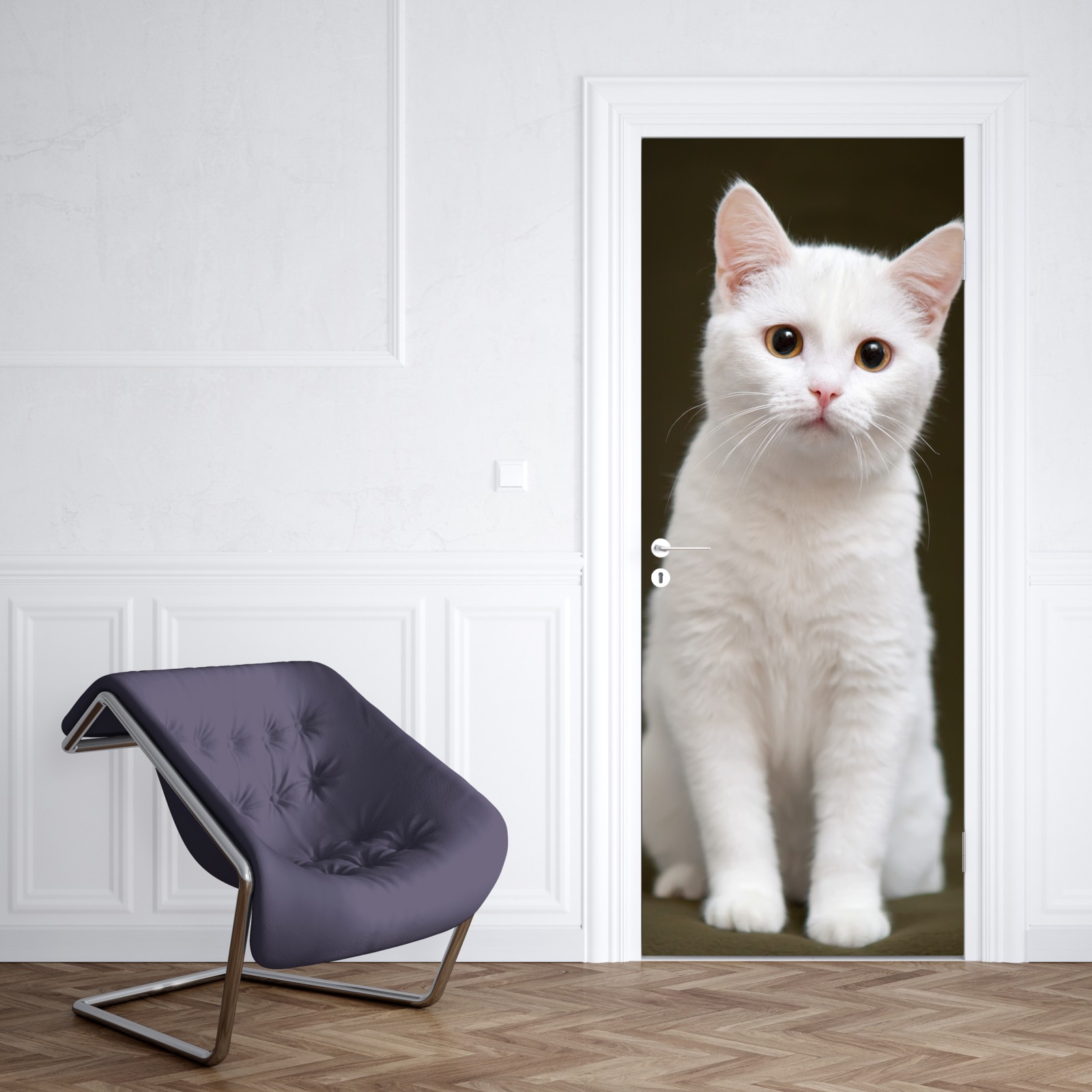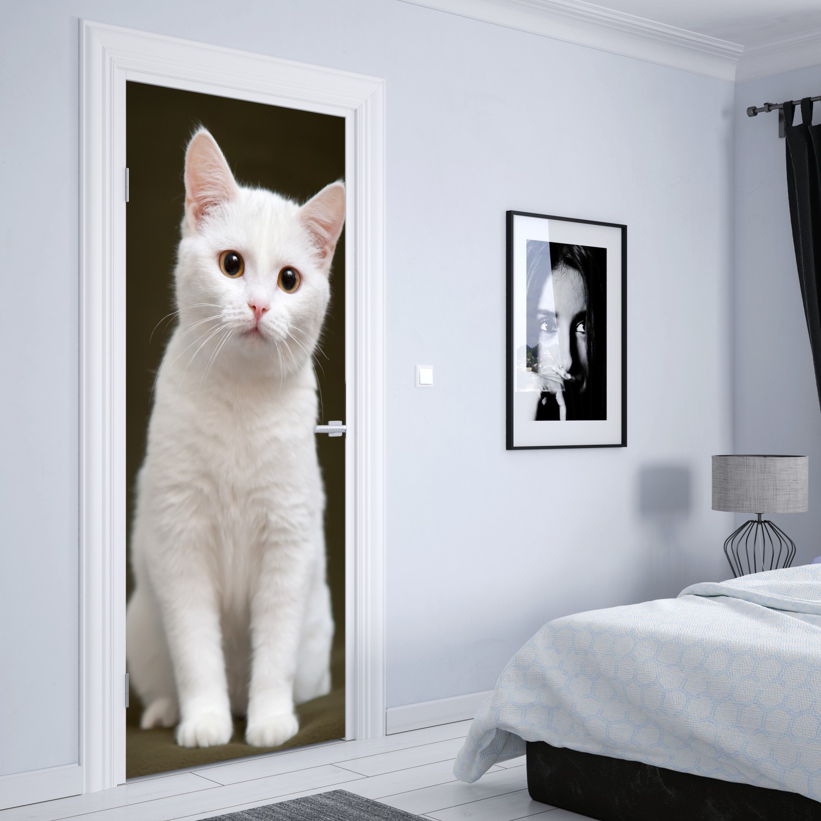 Dodaj ciepła i uroku do wnętrza dzięki temu wyraźnemu portretowi uroczego białego kota, idealnemu do sypialni i salonu.
