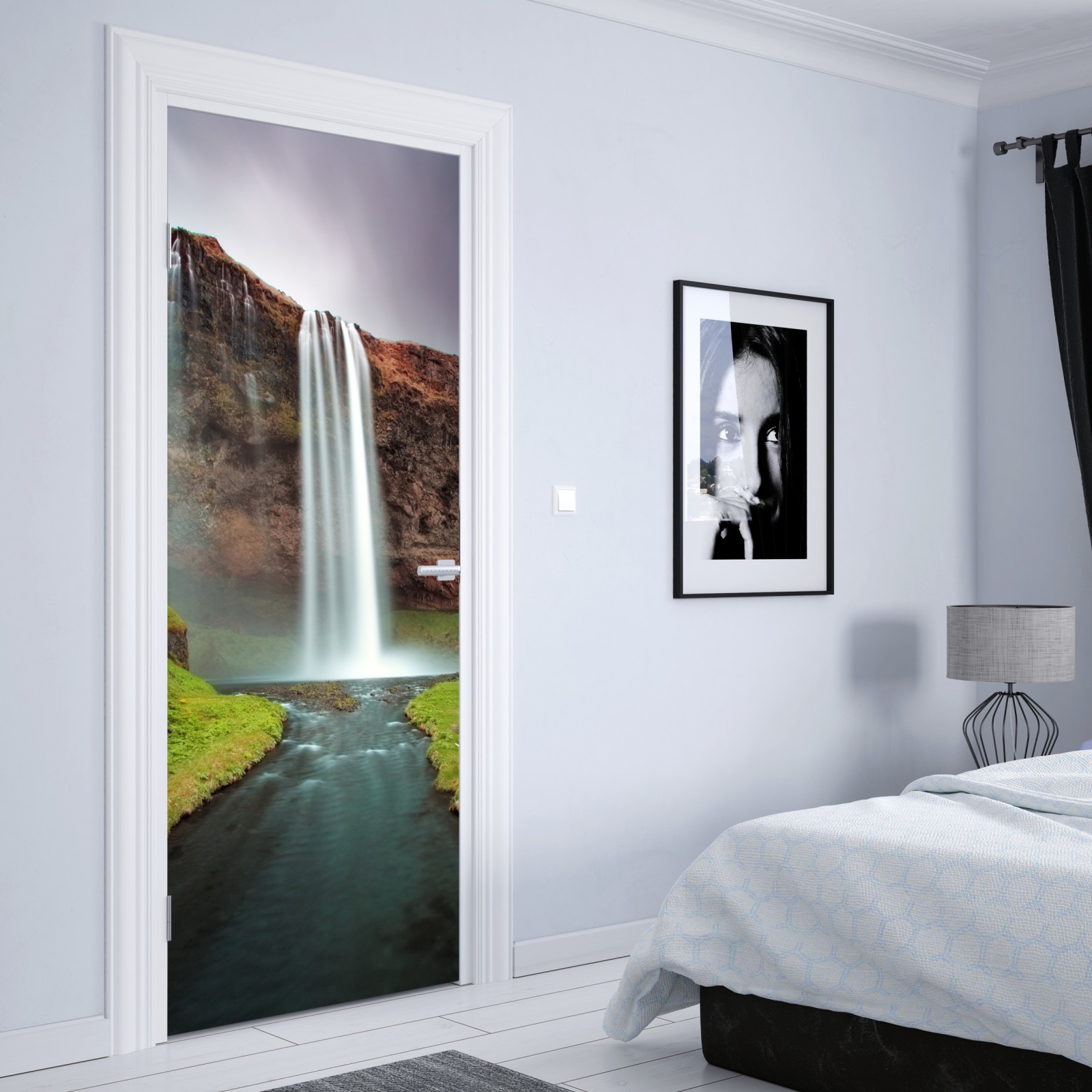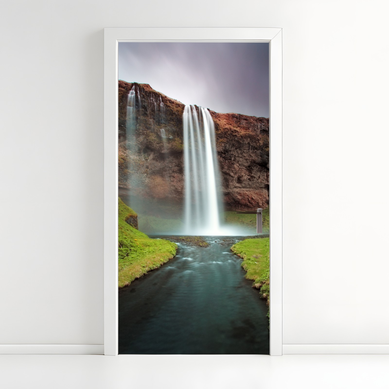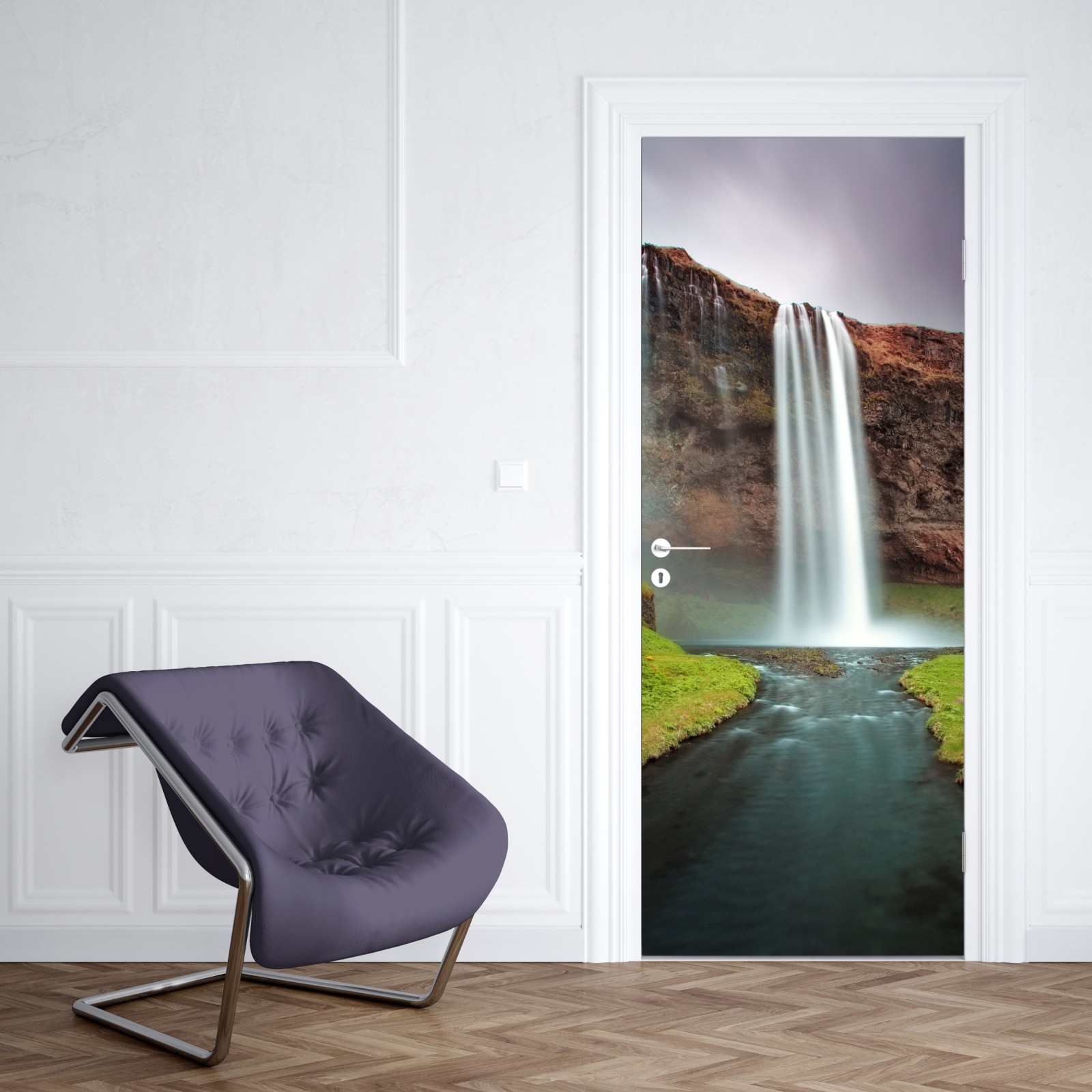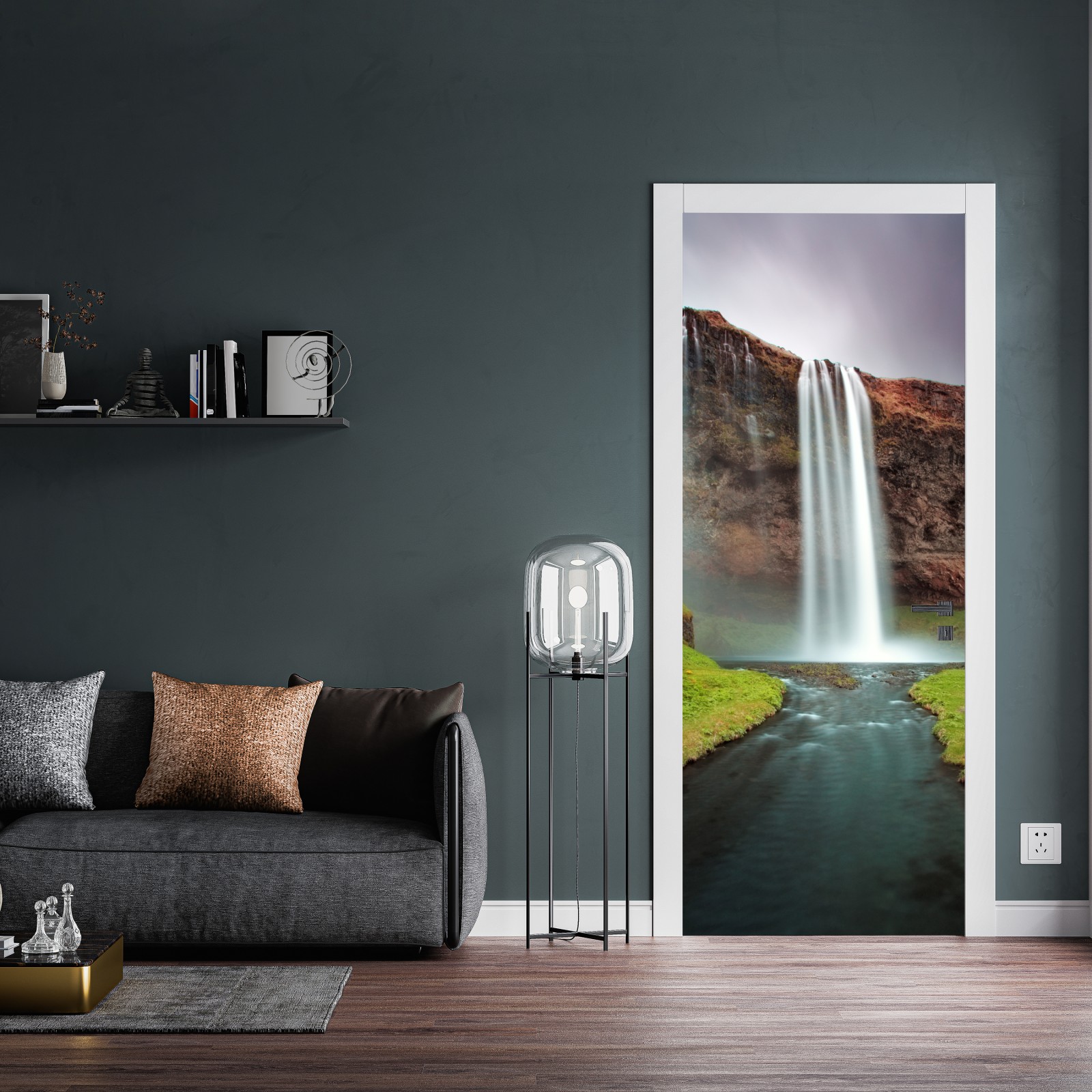 Naklejka na drzwi Mglisty wodospad w bujnej dolinie