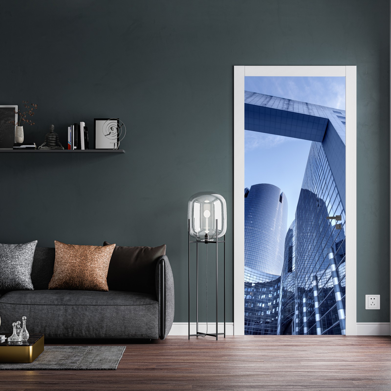 Naklejka na drzwi Nowoczesna niebieska panorama miejska