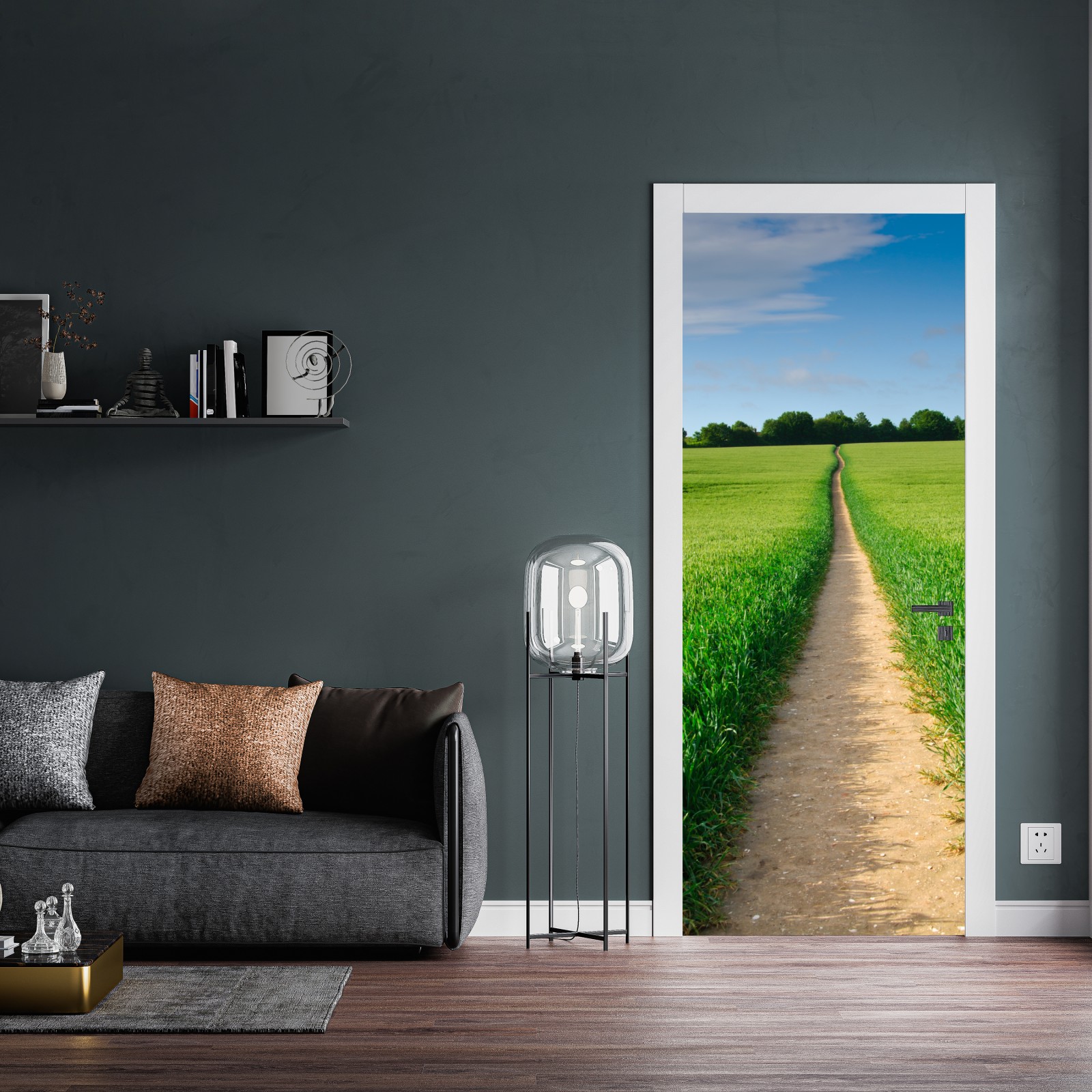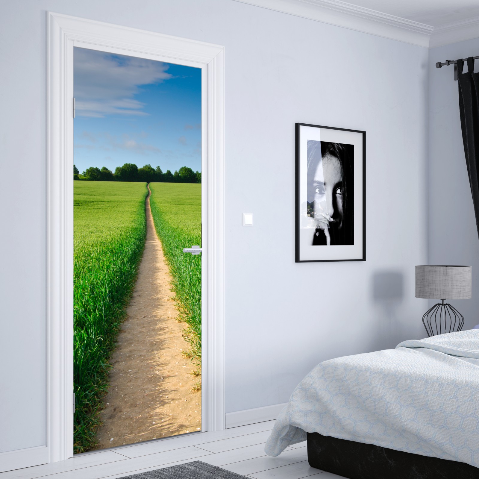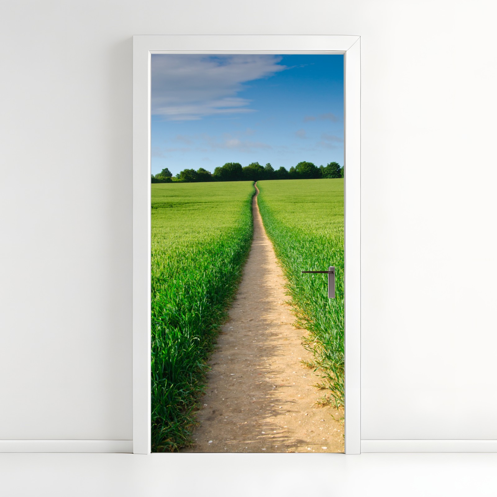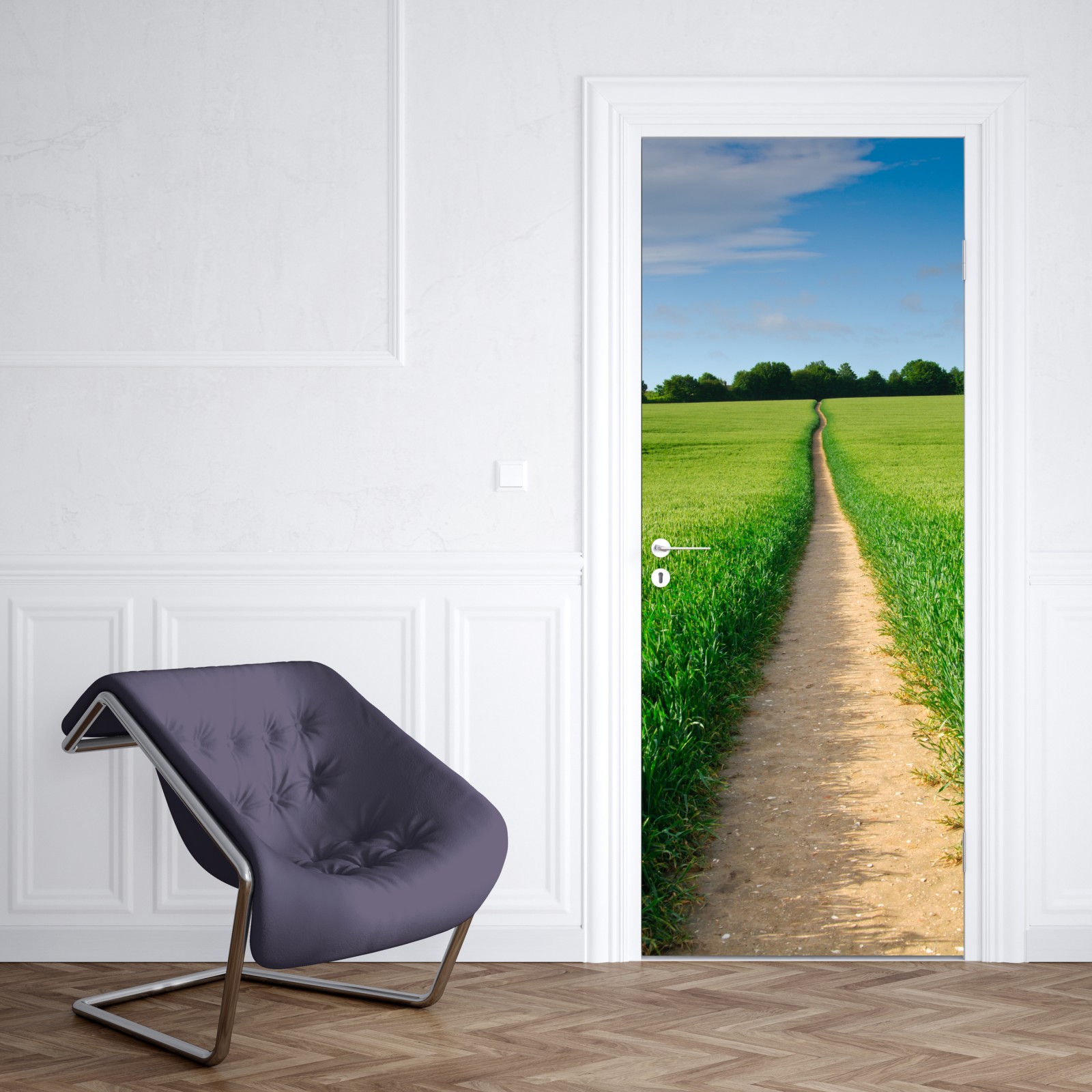Naklejka na drzwi Słoneczna ścieżka przez zieloną łąkę
