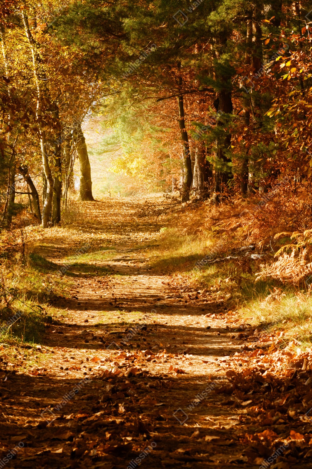 Wprowadź ciepło jesieni do wnętrza dzięki tej spokojnej leśnej ścieżce skąpanej w złotym świetle, idealnej do dodania naturalnego spokoju każdemu pomieszczeniu.
