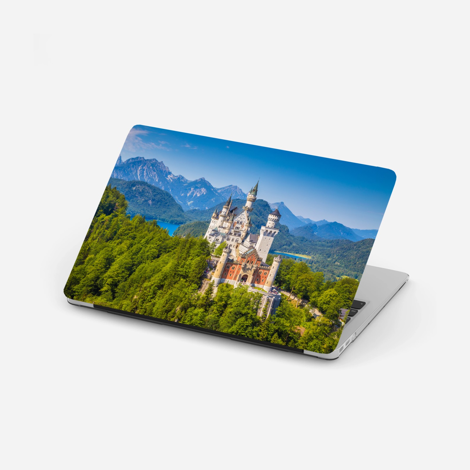 Naklejka na laptopa Zamek Neuschwanstein w alpejskim krajobrazie