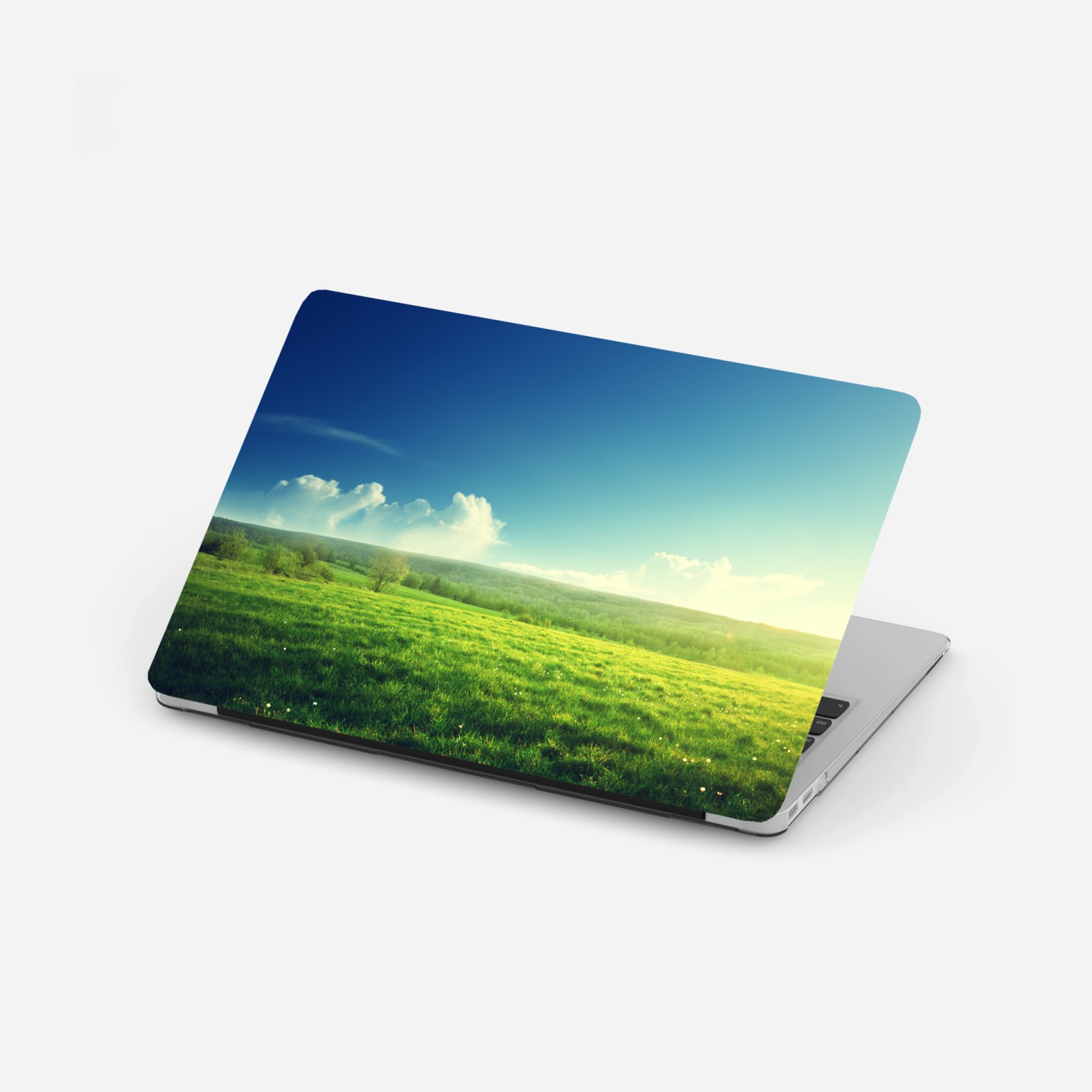 Naklejka na laptopa Słoneczna wiosenna łąka o zachodzie słońca