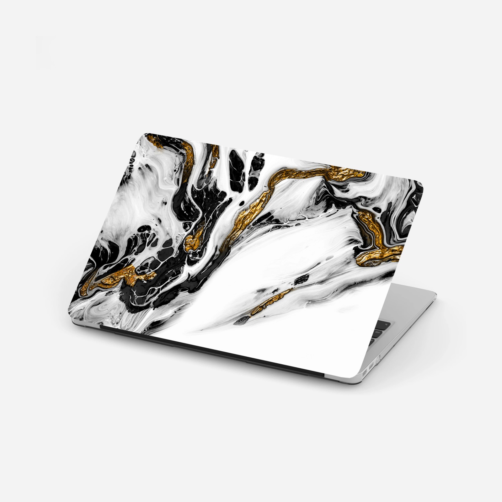 Naklejka na laptopa Czarno-biała abstrakcja ze złotymi żyłami