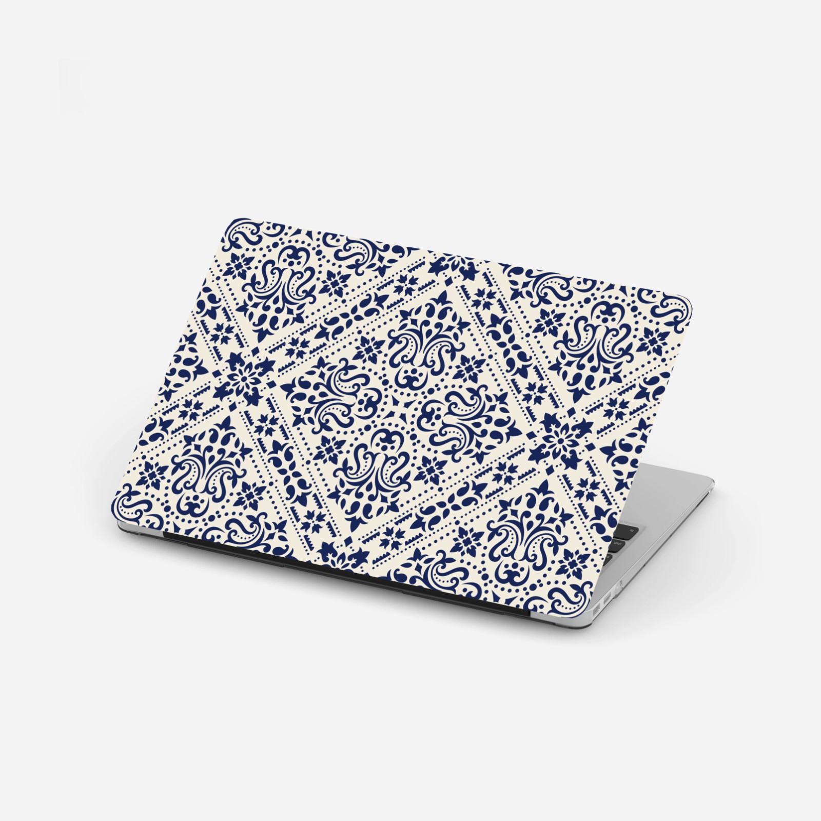 Naklejka na laptopa Granatowy wzór damaskowy na płytkach