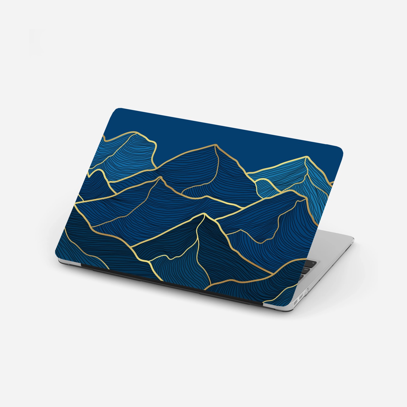 Naklejka na laptopa Złote linie górskie na granatowym tle