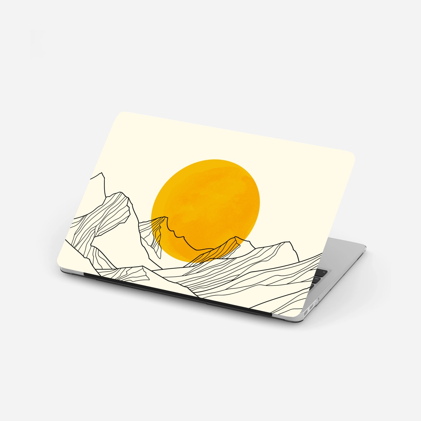 Naklejka na laptopa Złote słońce nad minimalistycznymi górami