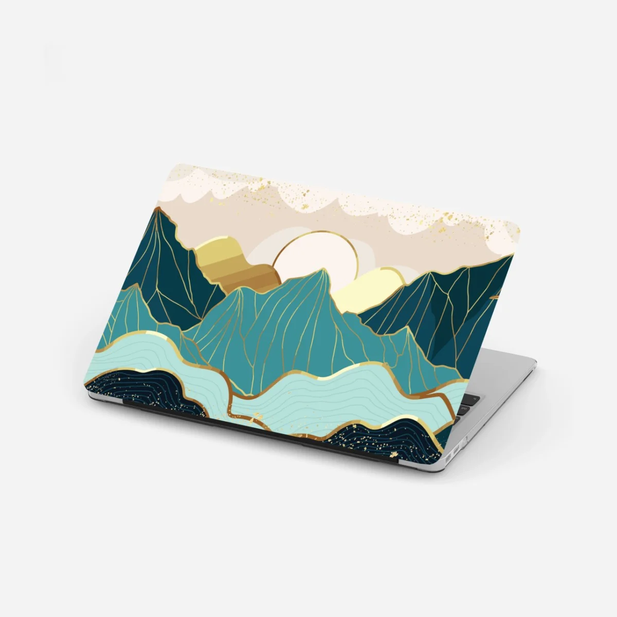 Naklejka na laptopa Turkusowe góry o złotych akcentach