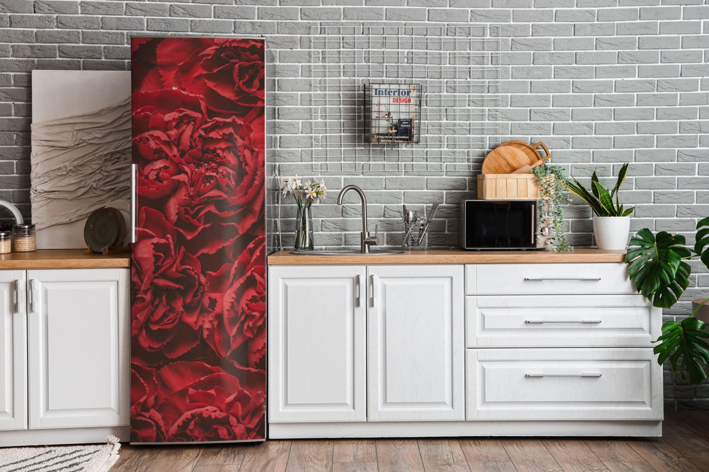 Naklejka na lodówkę Retro czerwone goździki wzór kwiatowy