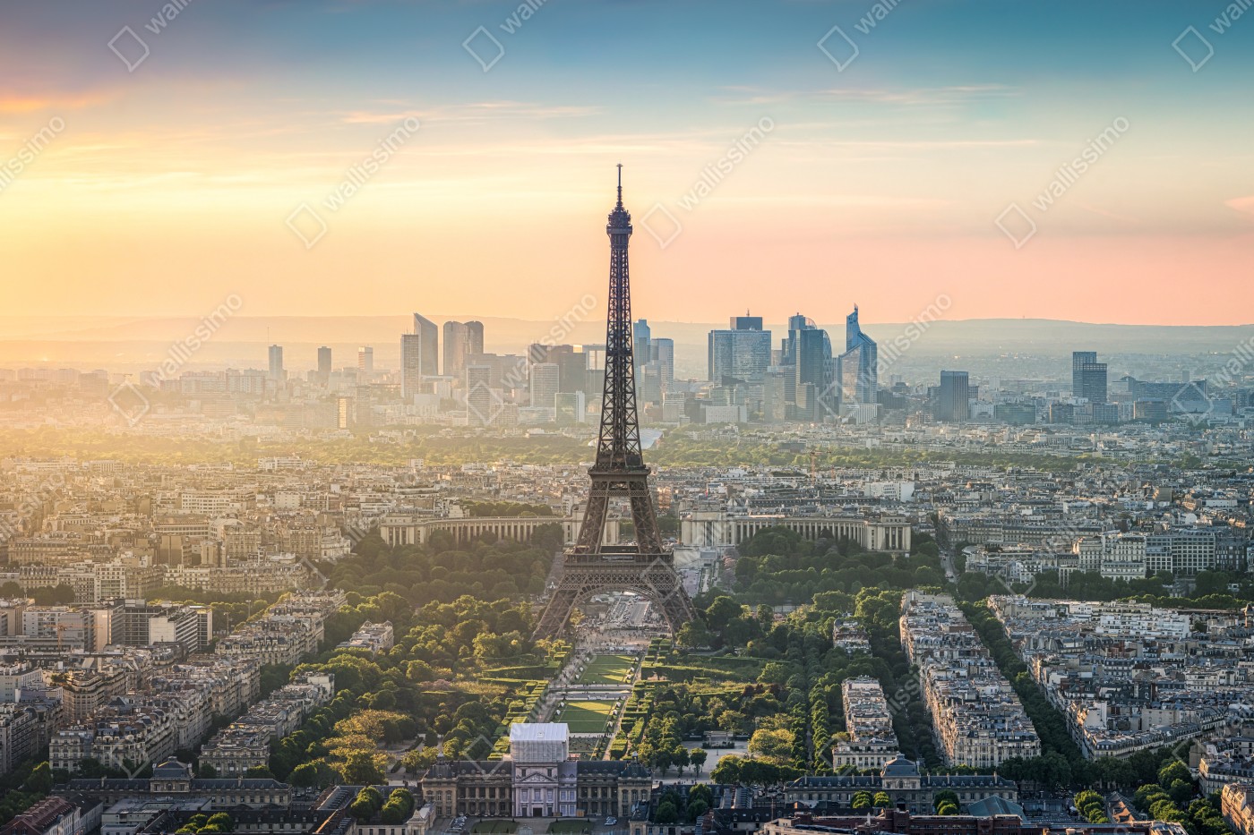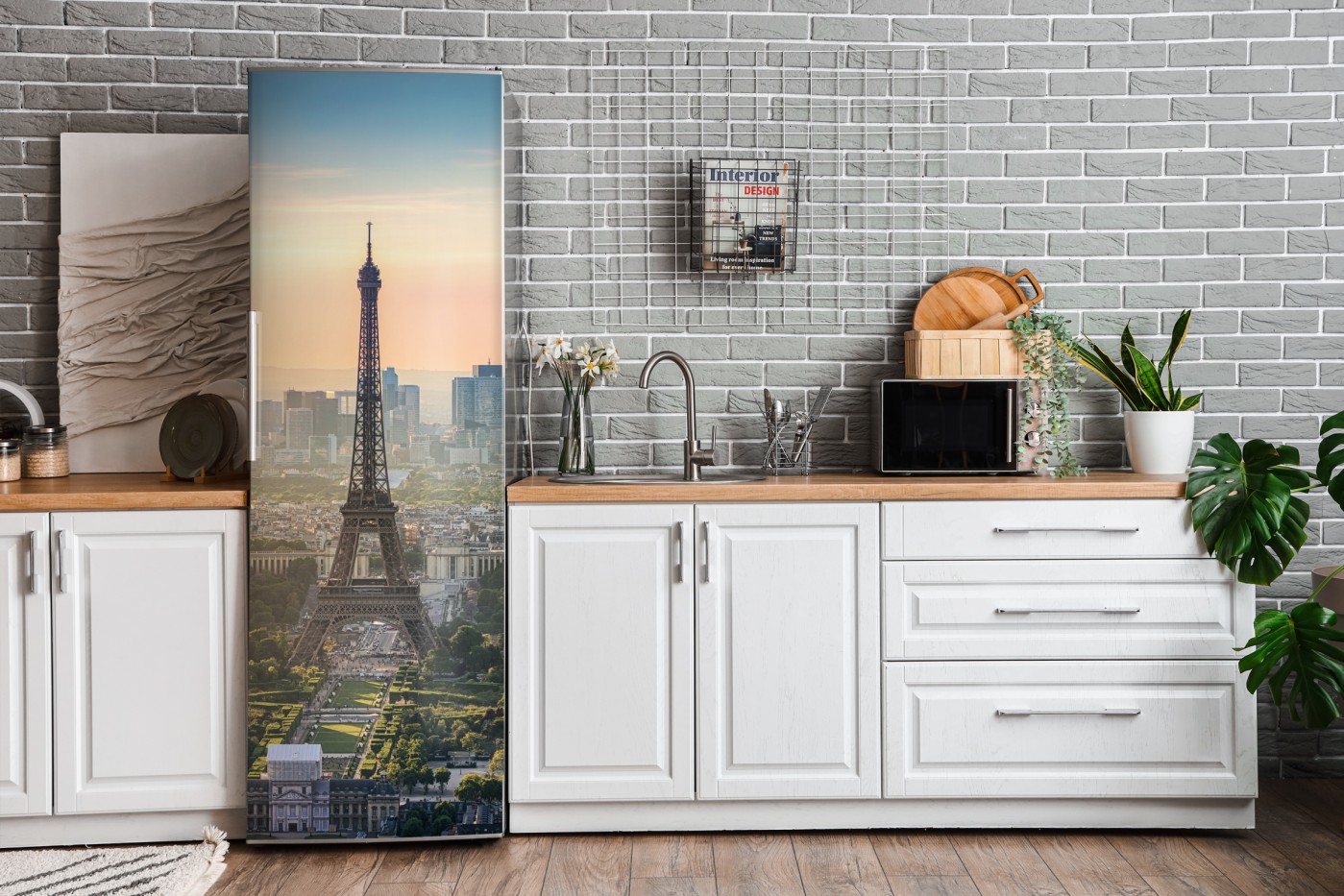 Naklejka na lodówkę Paryż panorama o zachodzie słońca z Wieżą Eiffla