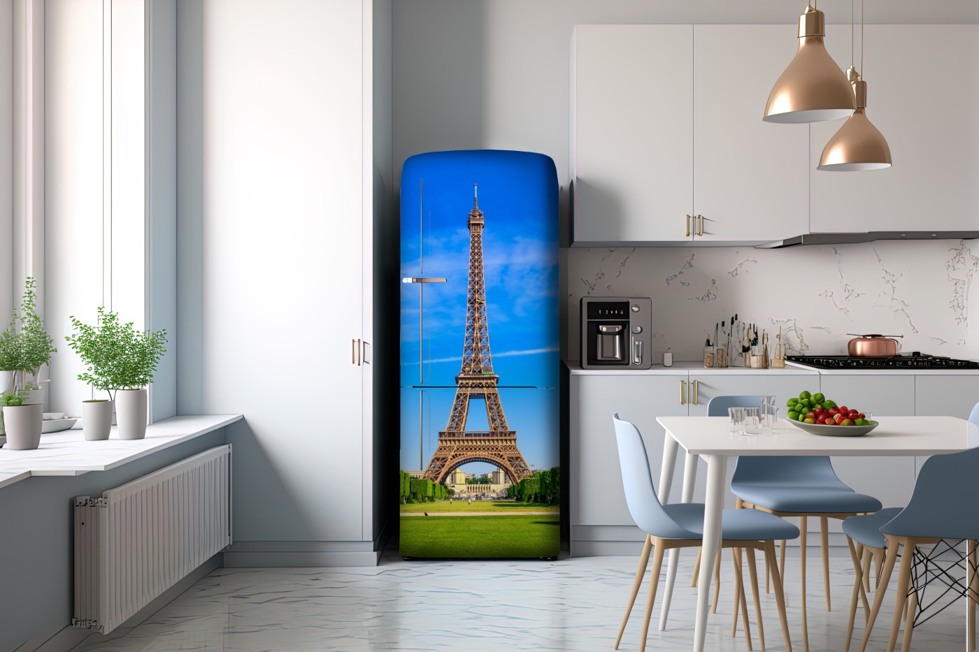 Naklejka na lodówkę Wieża Eiffla na Polu Marsowym, żywy paryski krajobraz