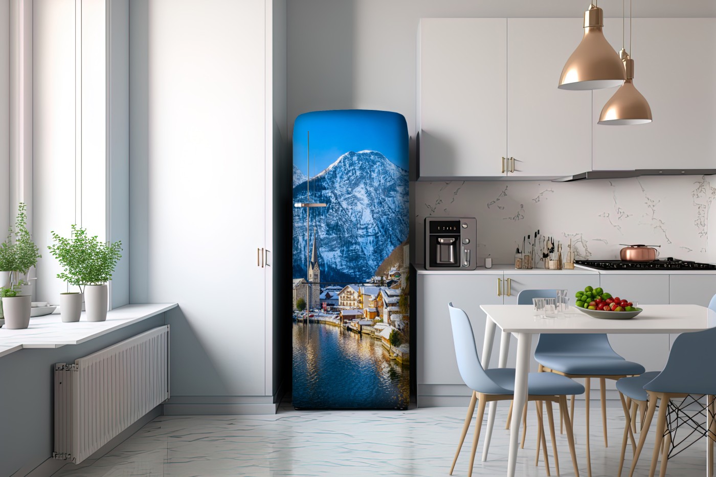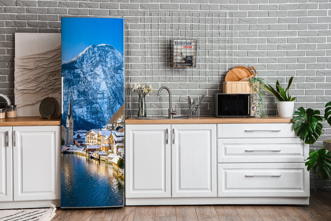 Naklejka na lodówkę Zimowy spokój w Hallstatt — alpejska wioska nad jeziorem