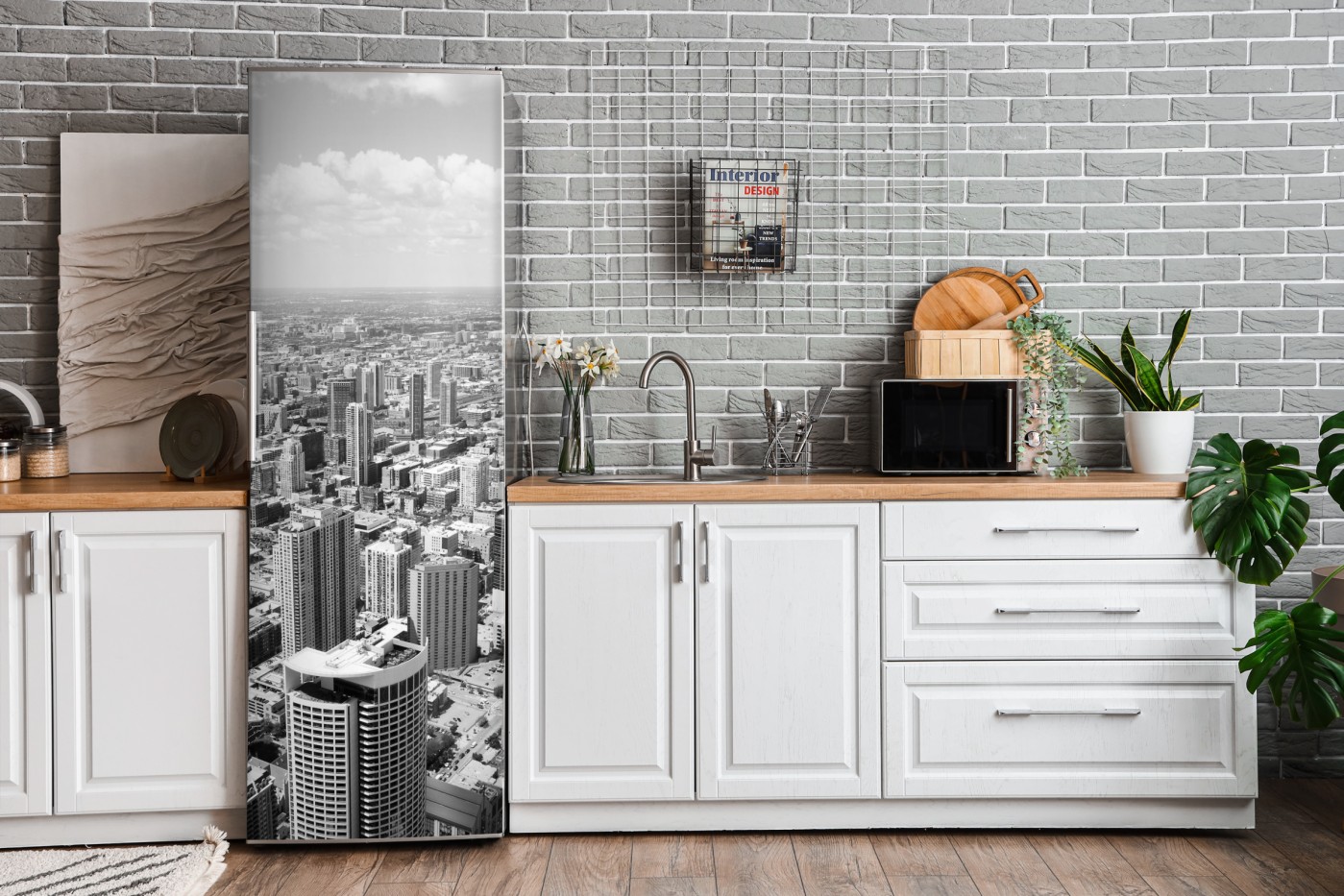 Naklejka na lodówkę Chicago panorama miasta w odcieniach szarości