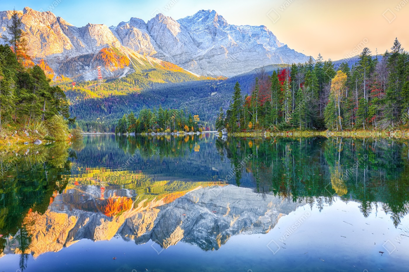 Naklejka na lodówkę Jesienne odbicie na Eibsee przy Zugspitze