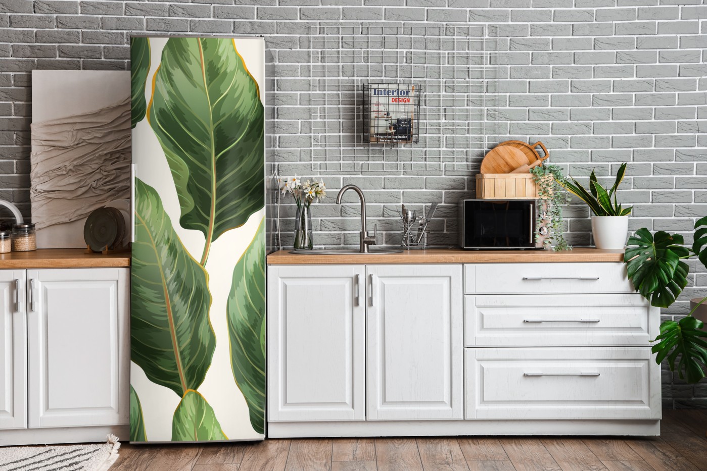 Naklejka na lodówkę Tropikalny wzór z liśćmi bananowca