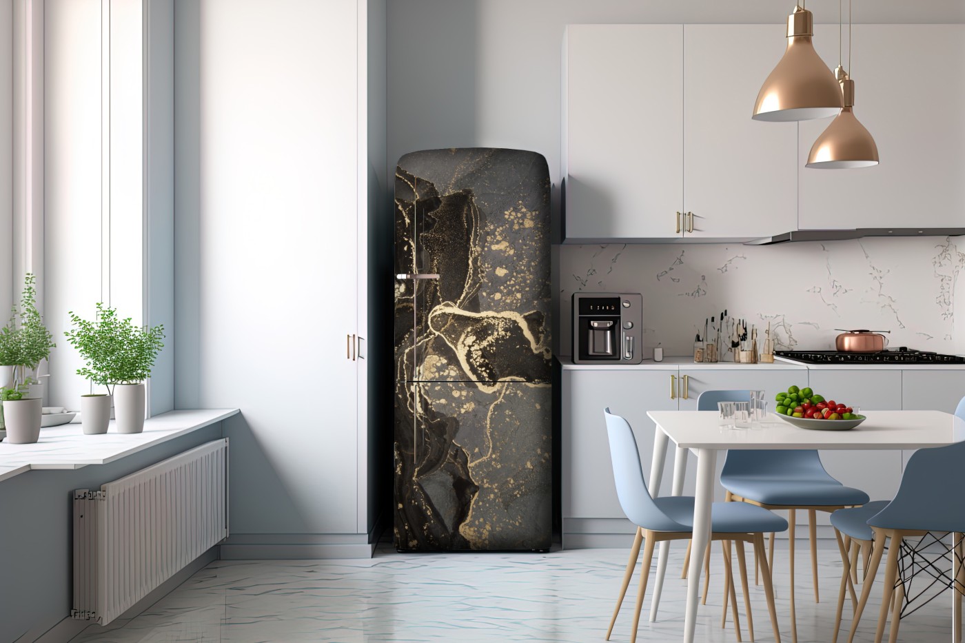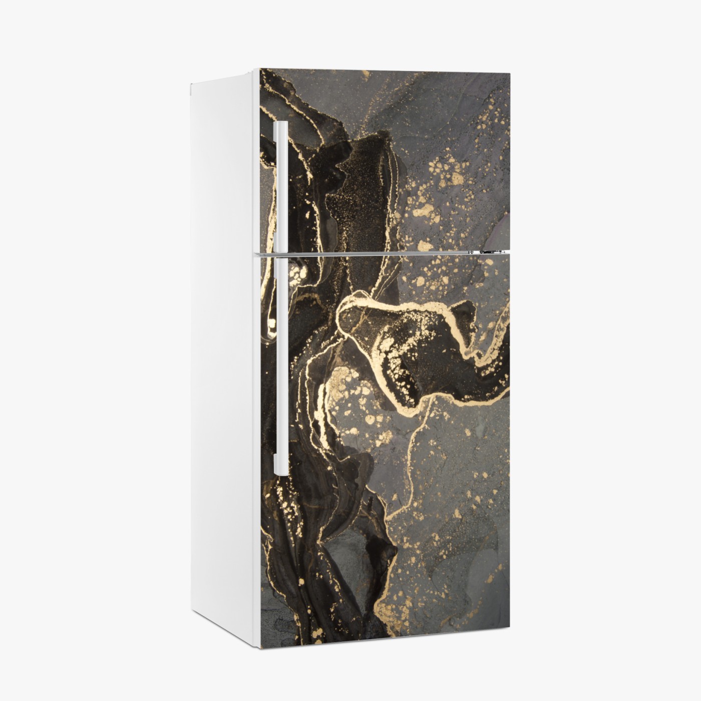 Naklejka na lodówkę Luksusowy czarno-złoty marmur abstrakcyjny