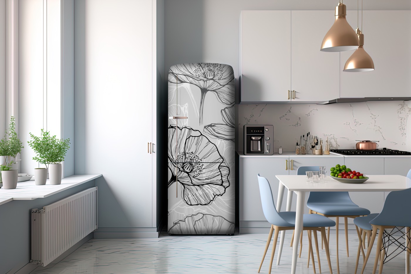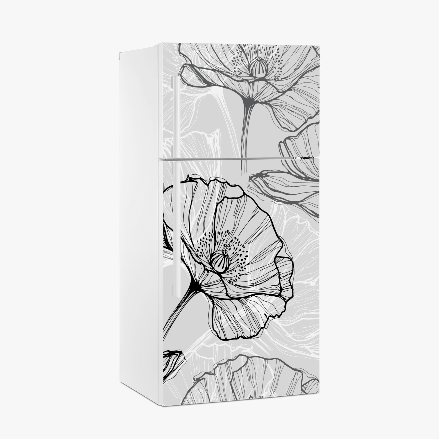 Naklejka na lodówkę Delikatny szary mak w rysunku liniowym