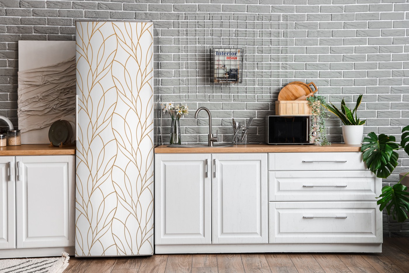 Naklejka na lodówkę Złoty wzór liści na białym tle