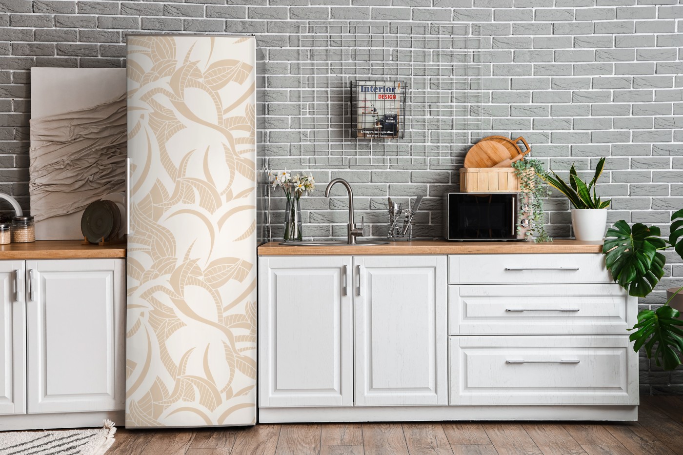 Naklejka na lodówkę Beżowy liściasty wzór botaniczny