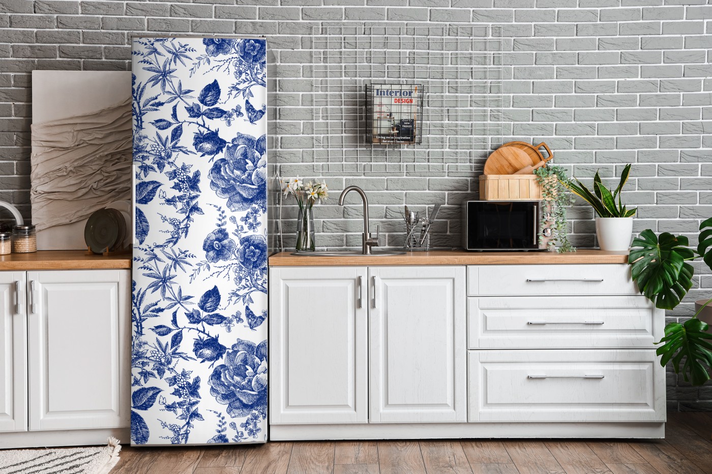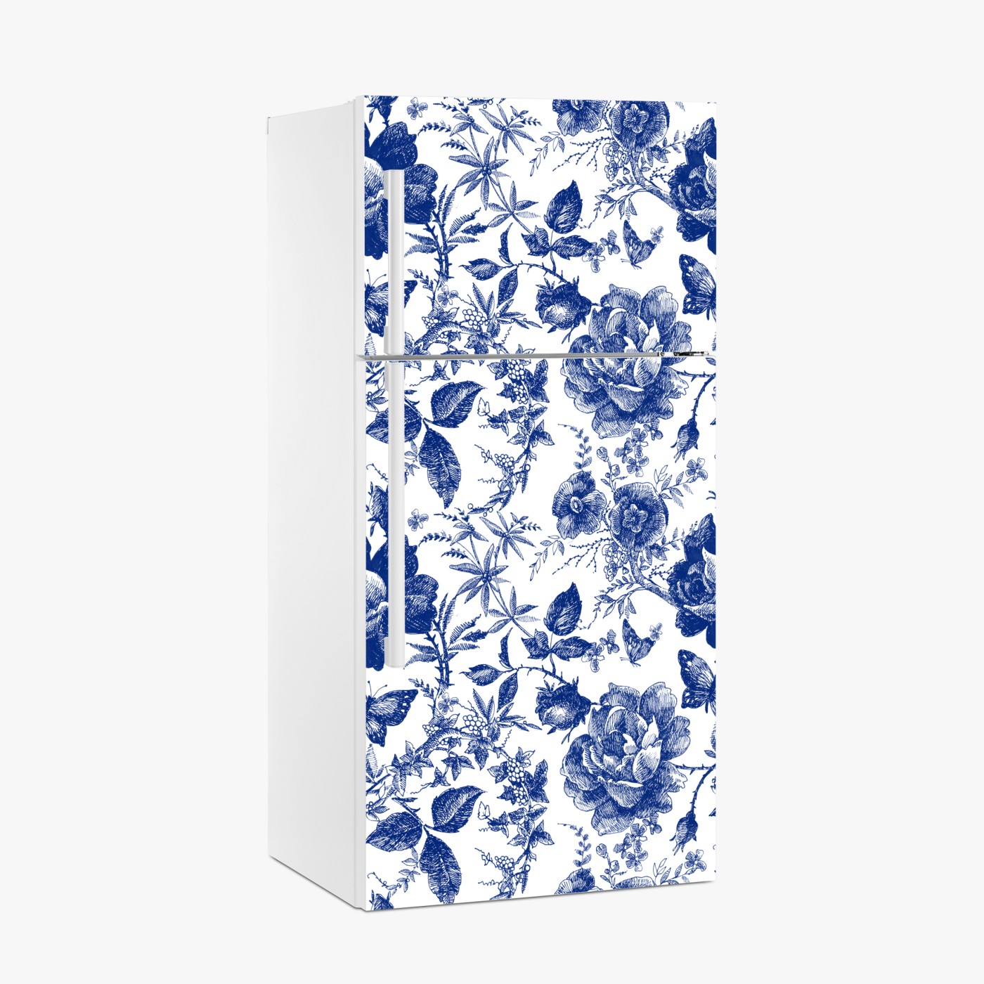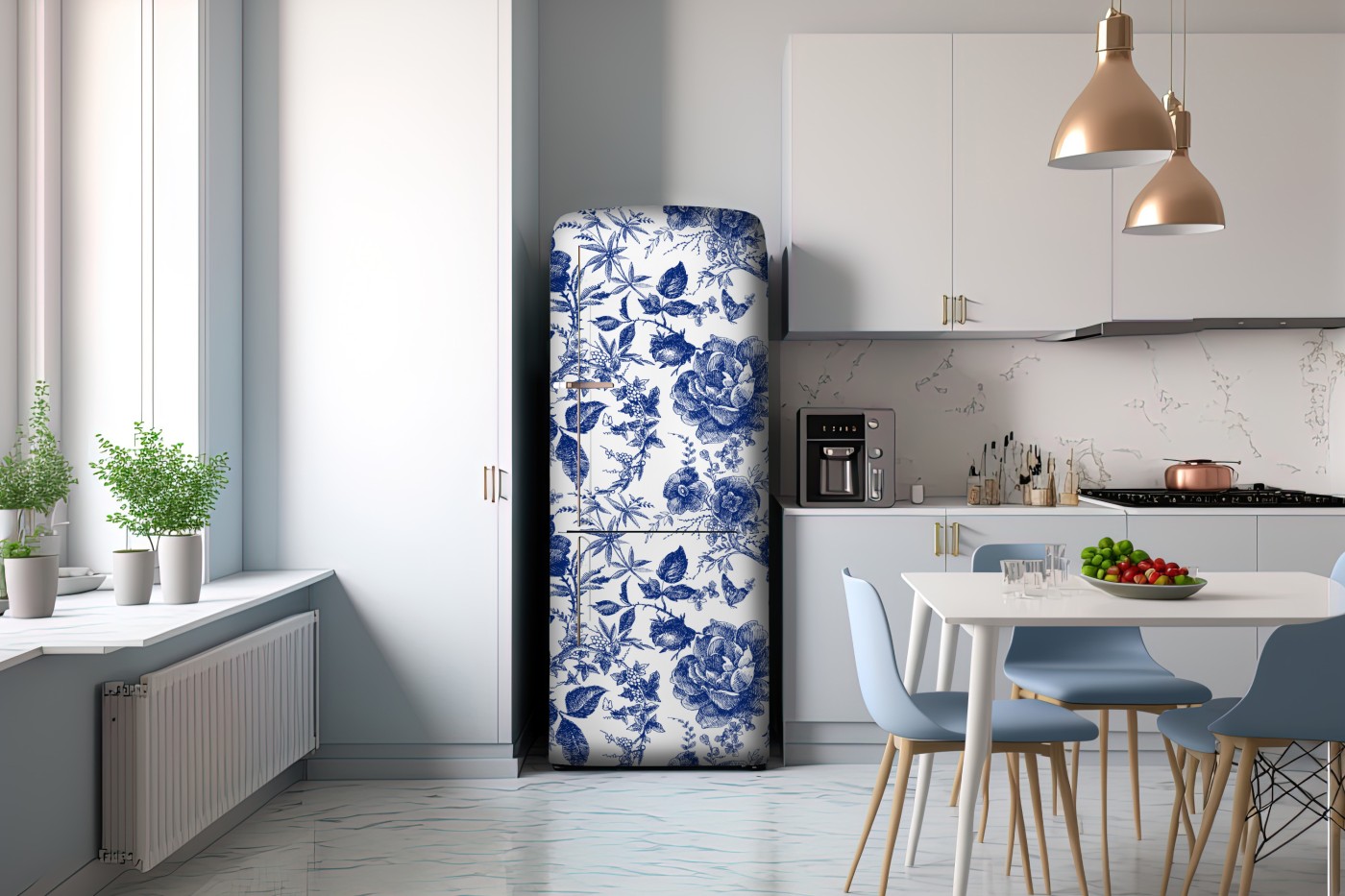 Naklejka na lodówkę Niebieski kwiatowy wzór toile
