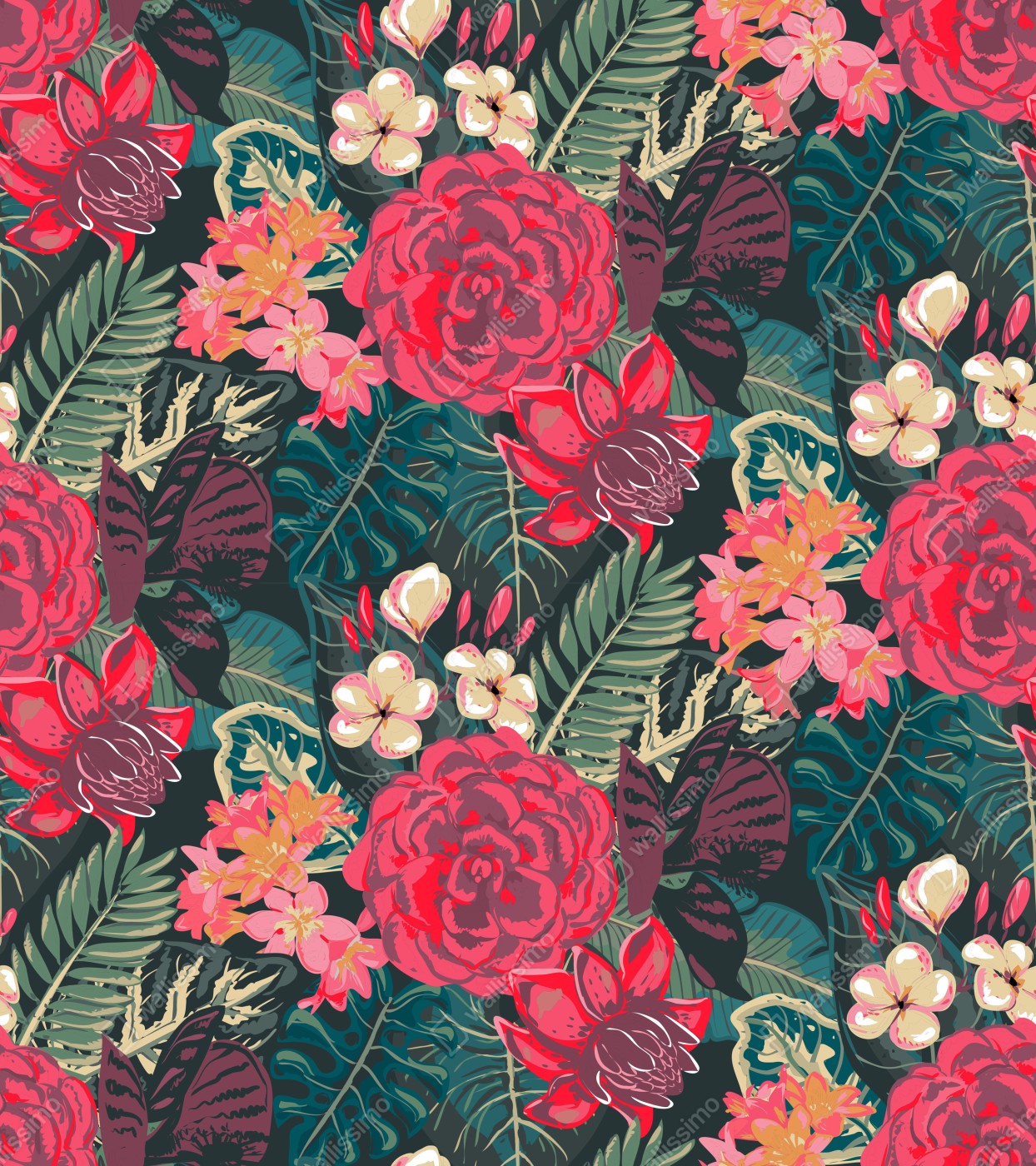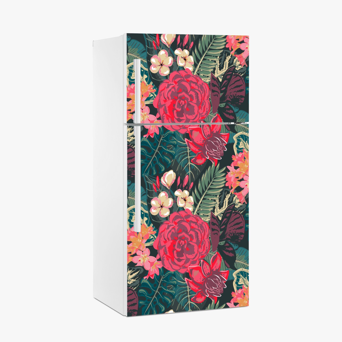 Naklejka na lodówkę Tropikalny wzór kwiatowy w różu i turkusie