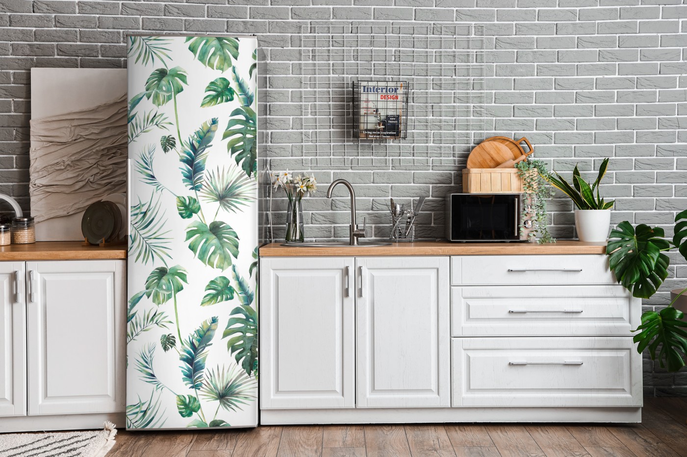Naklejka na lodówkę Akwarelowy wzór tropikalnych liści