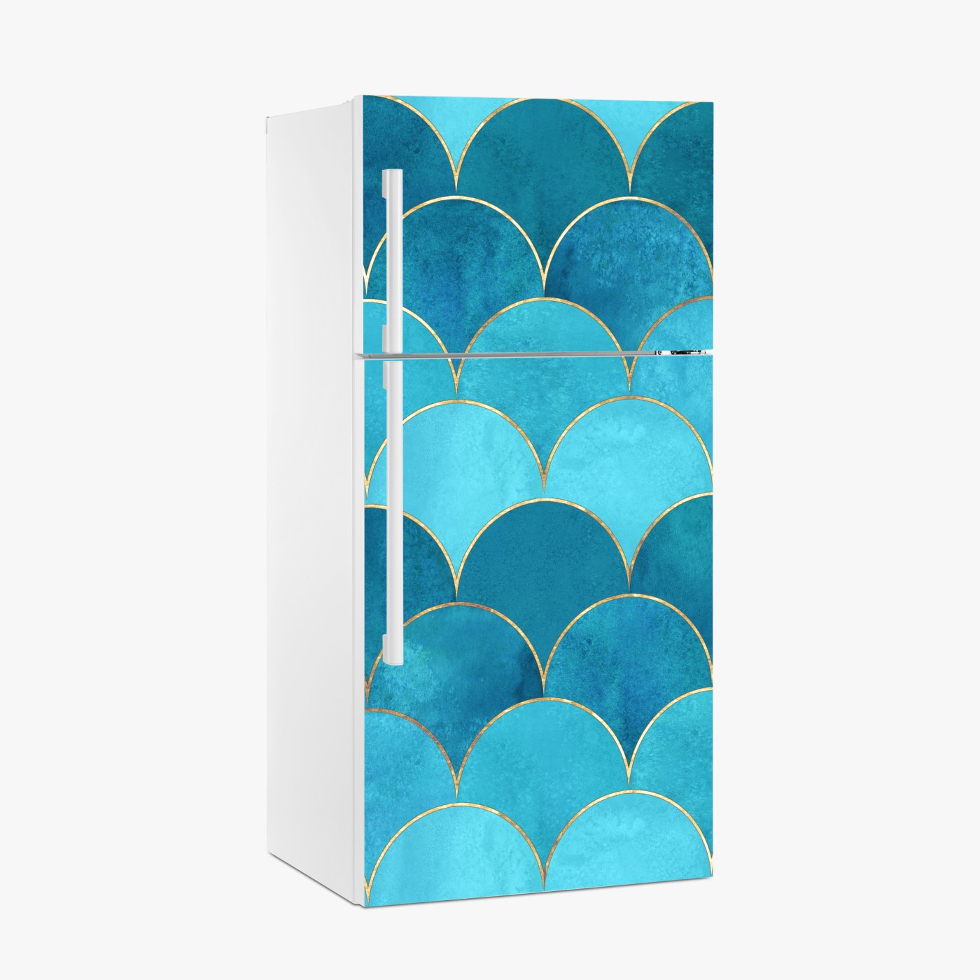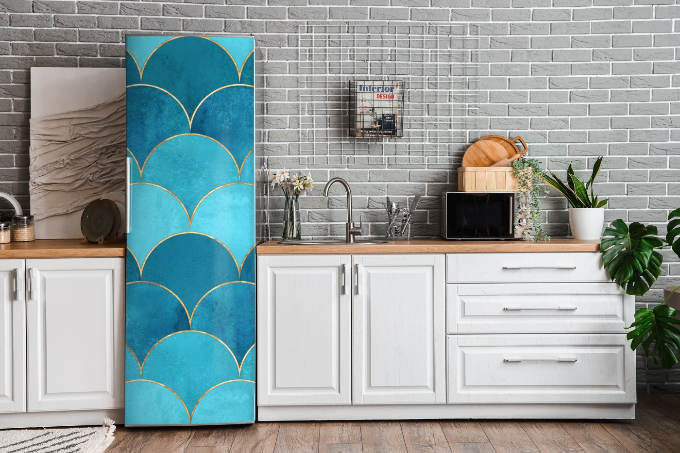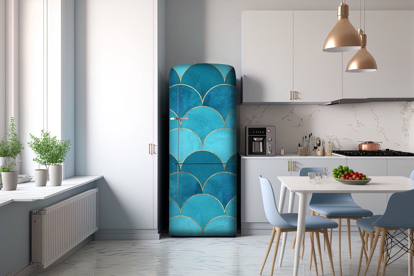 Naklejka na lodówkę Turkusowy wzór łusek z złotymi detalami