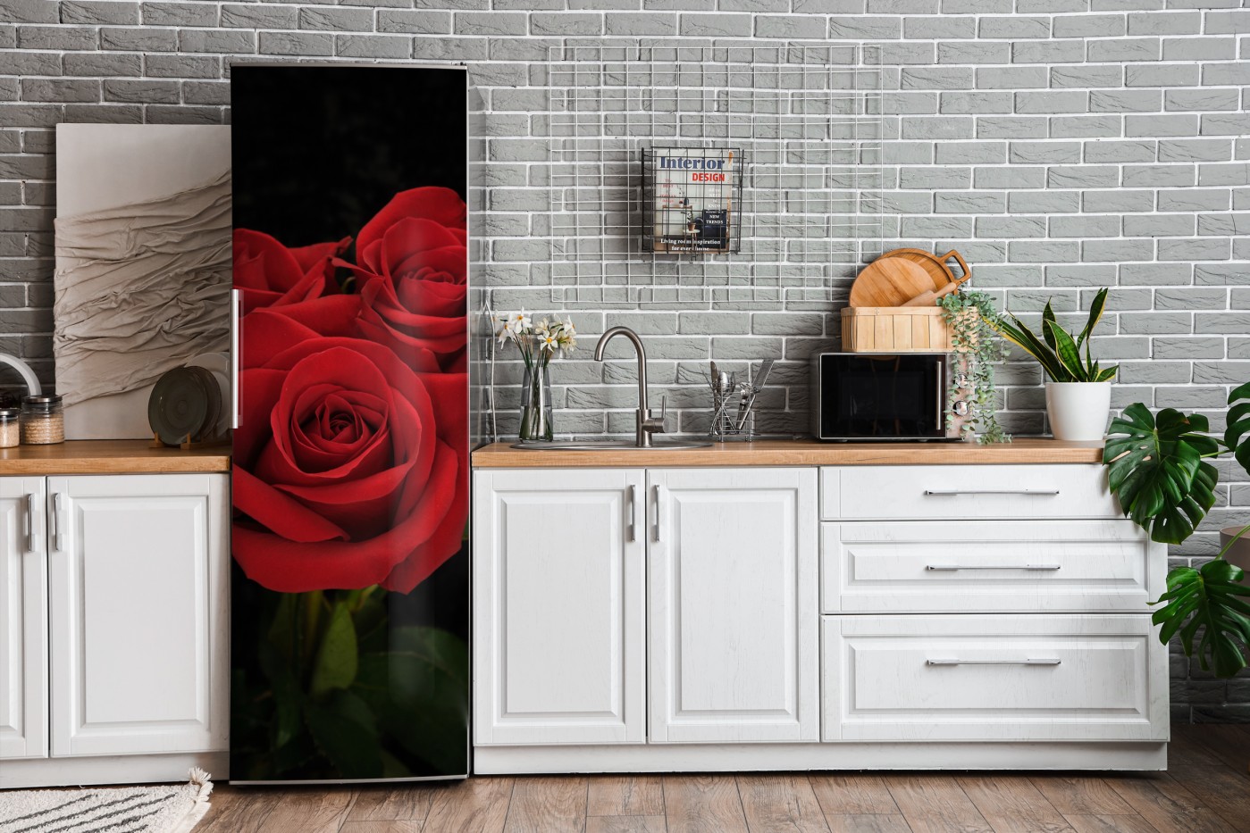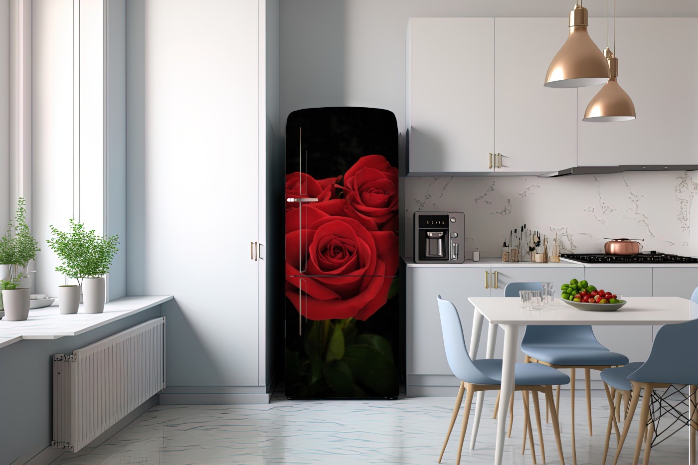 Naklejka na lodówkę Czerwone róże na czarnym tle