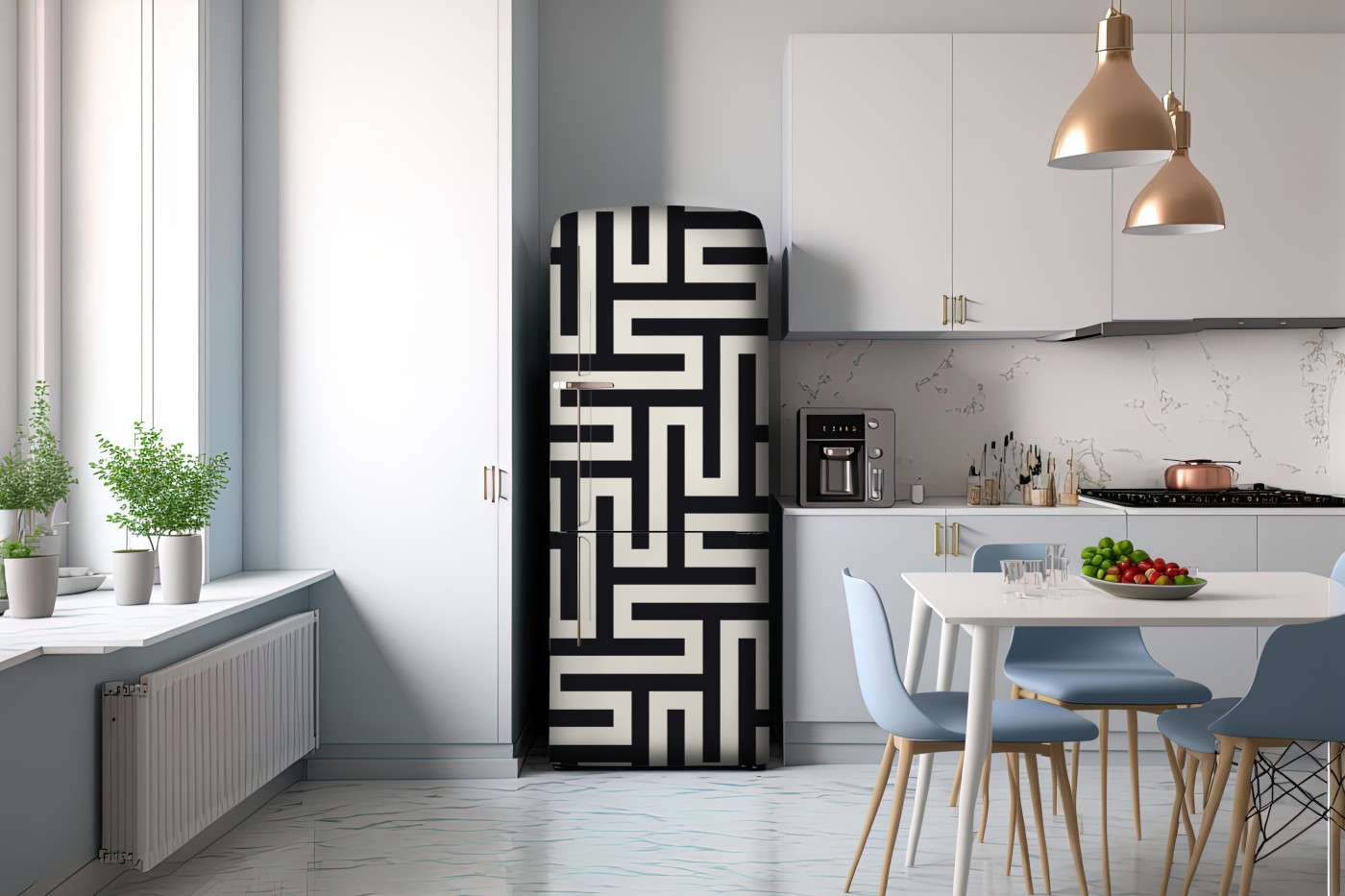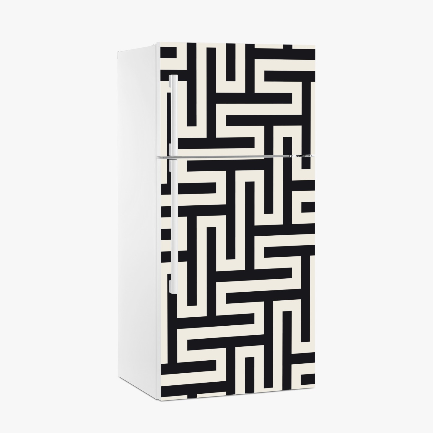 Naklejka na lodówkę Geometryczny wzór labiryntu w beżu i czerni