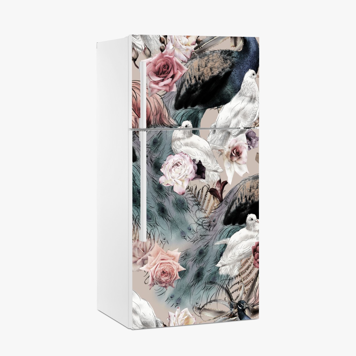 Naklejka na lodówkę Akwarelowy wzór z ptakami i różami