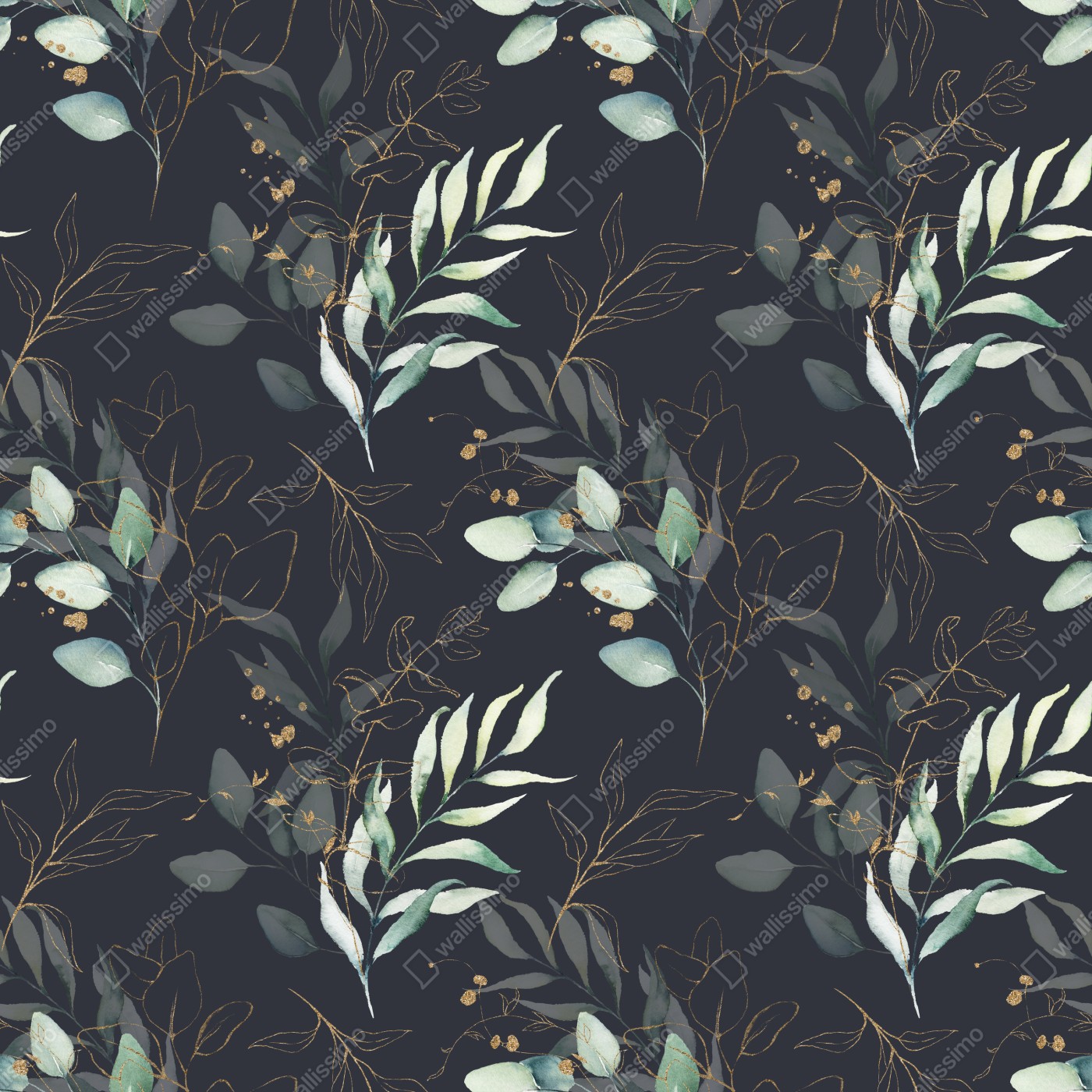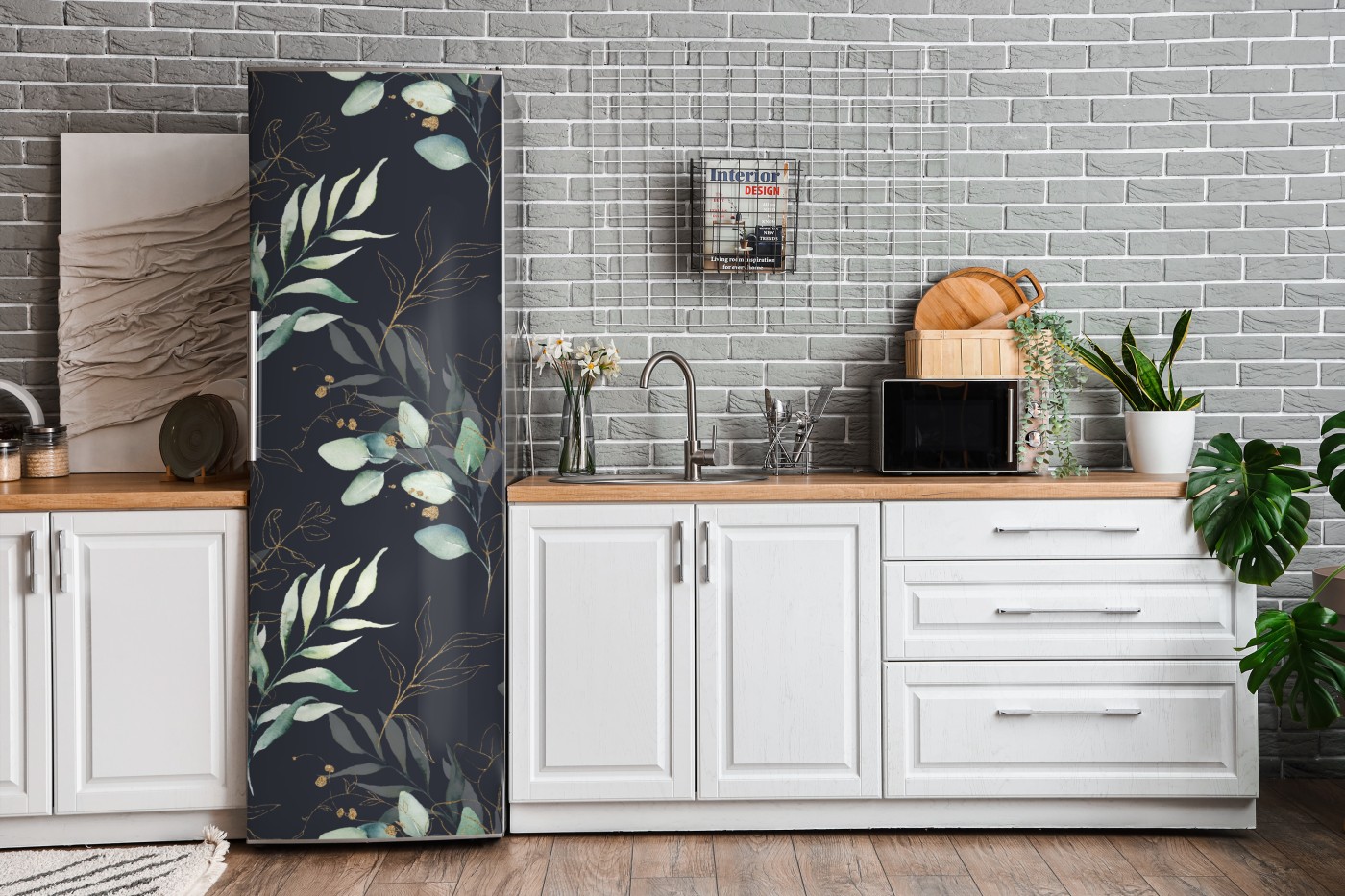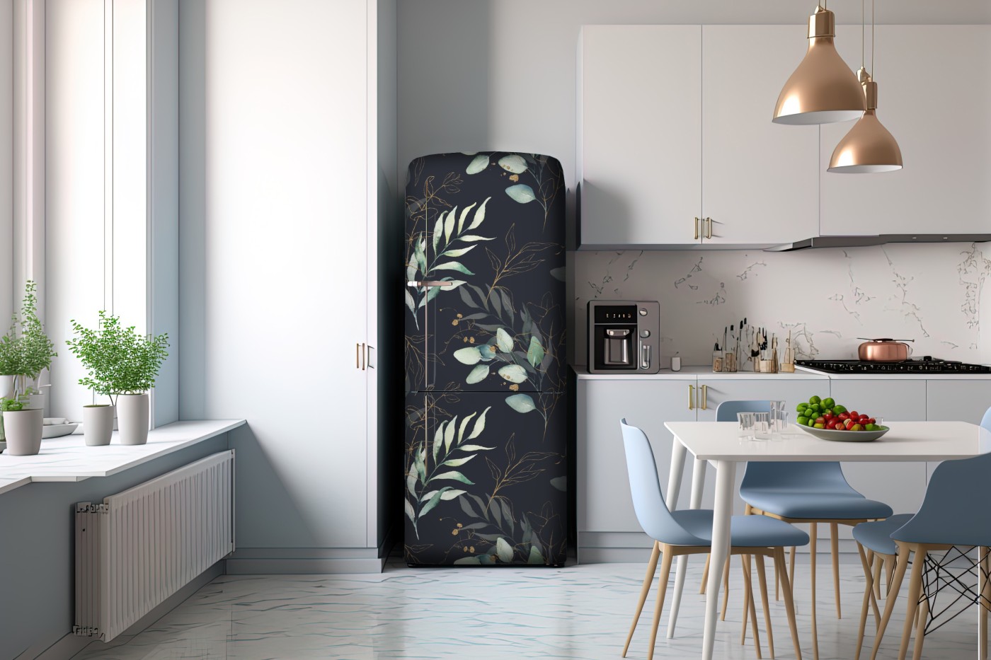 Naklejka na lodówkę Akwarelowe liście eukaliptusa na ciemnym tle