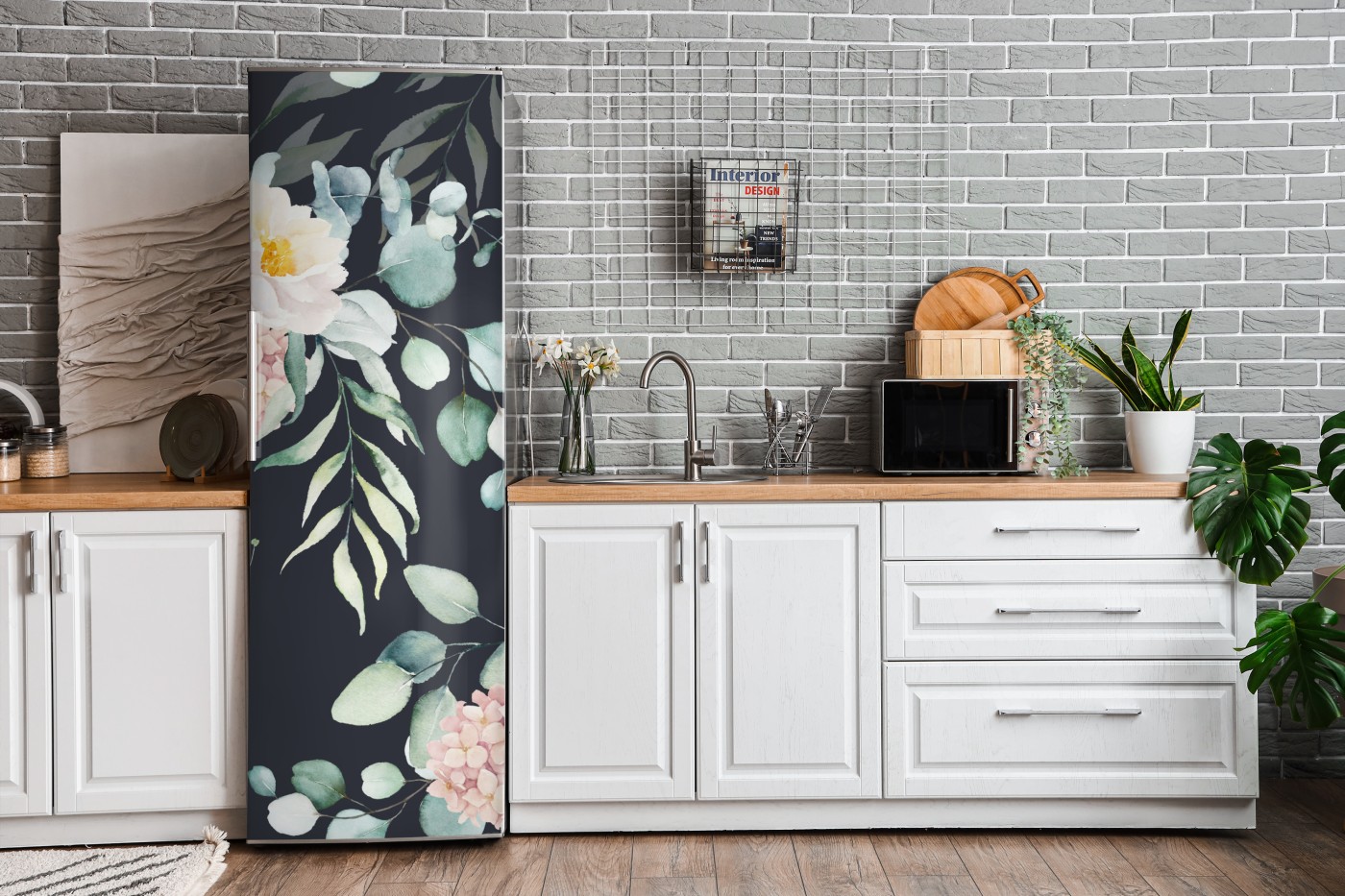 Naklejka na lodówkę Elegancki akwarelowy wzór kwiatowy na ciemnym tle