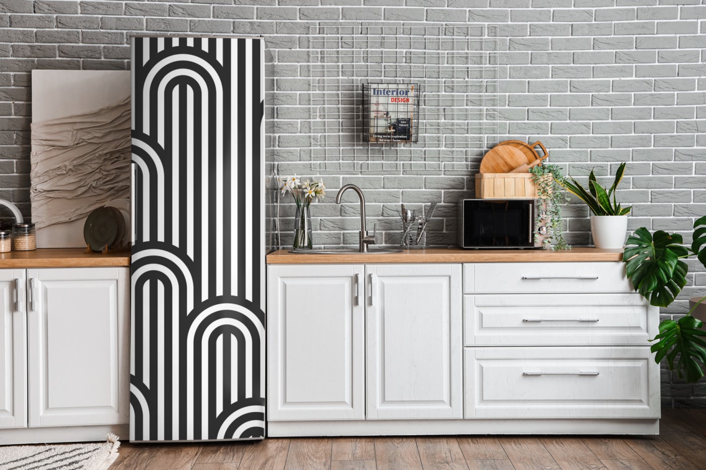 Naklejka na lodówkę Czarno-biały geometryczny wzór w paski
