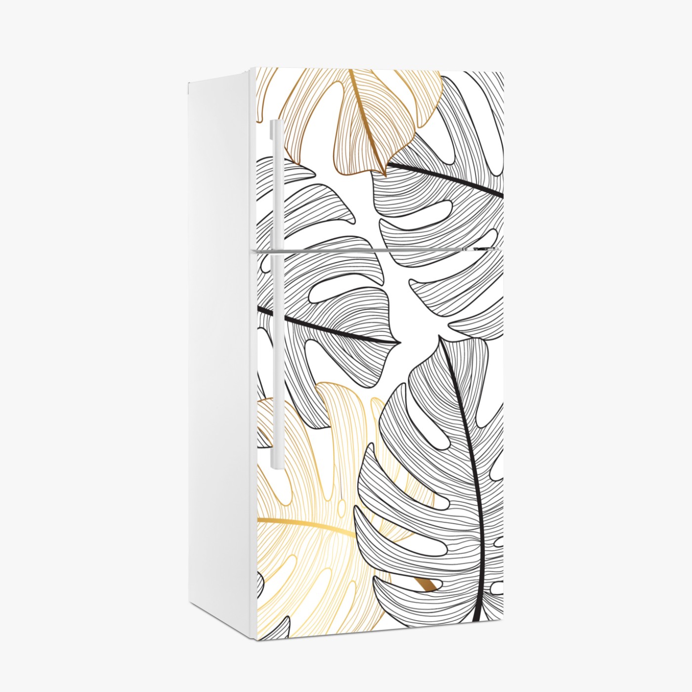 Naklejka na lodówkę Wzór liści monstera ze złotymi akcentami