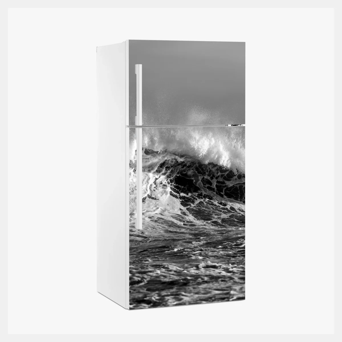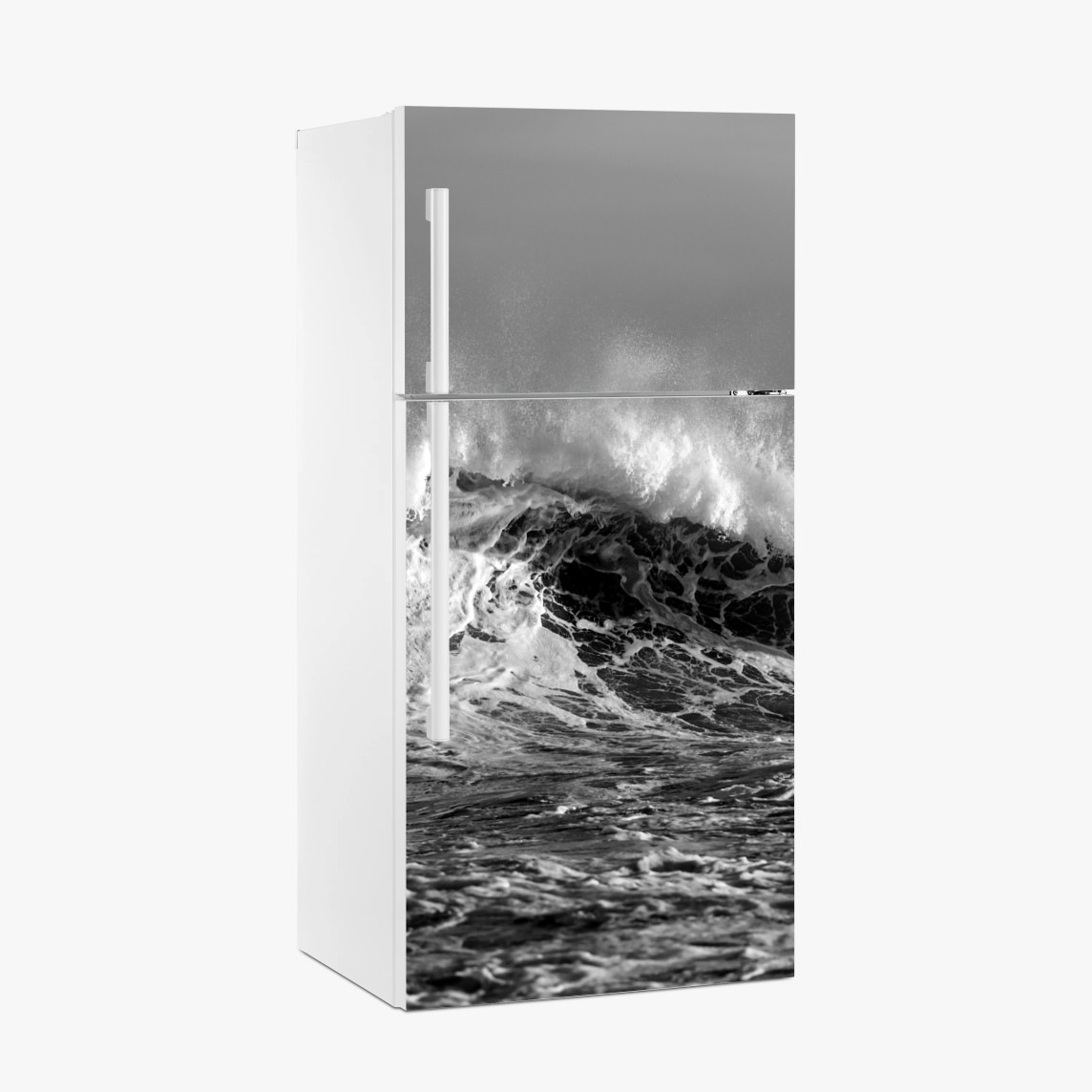Naklejka na lodówkę Dramatyczna czarno-biała fala oceanu