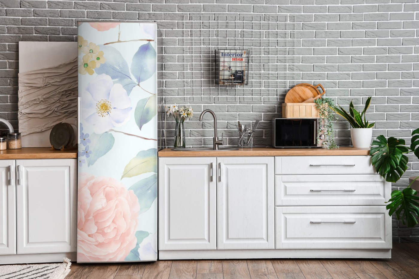 Naklejka na lodówkę Delikatne pastelowe kwiaty w akwareli