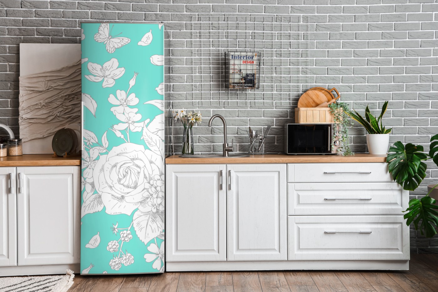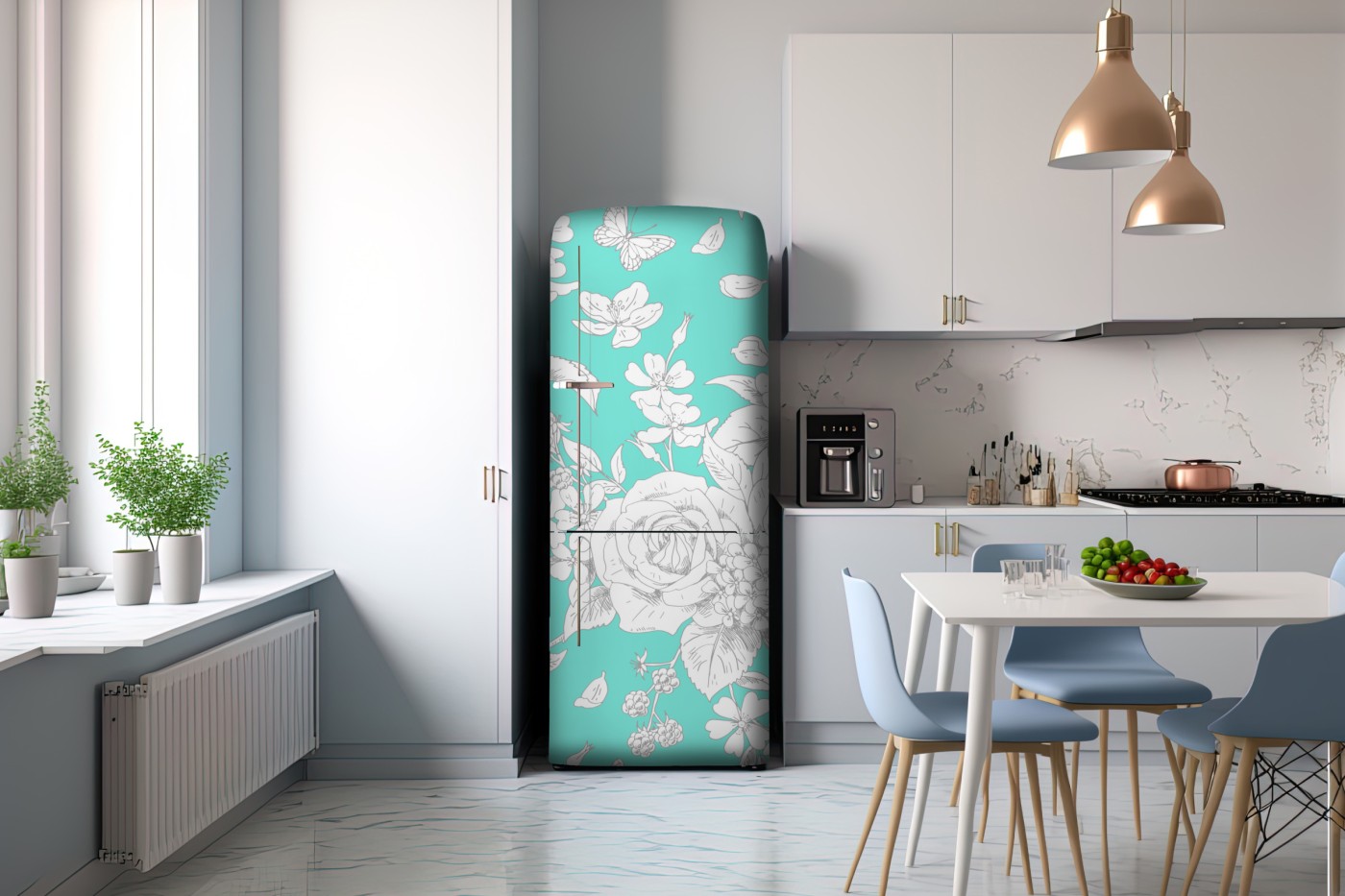 Naklejka na lodówkę Turkusowy wzór botaniczny z kwiatami