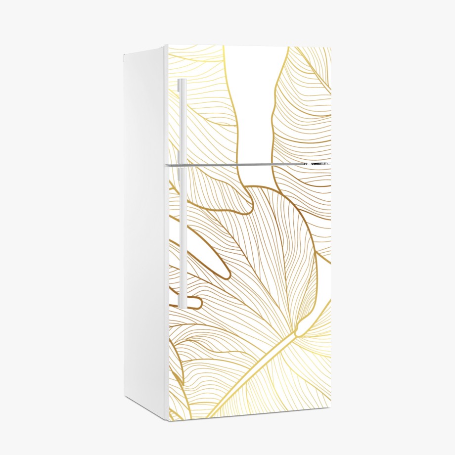 Naklejka na lodówkę Złote botaniczne rysunki liści