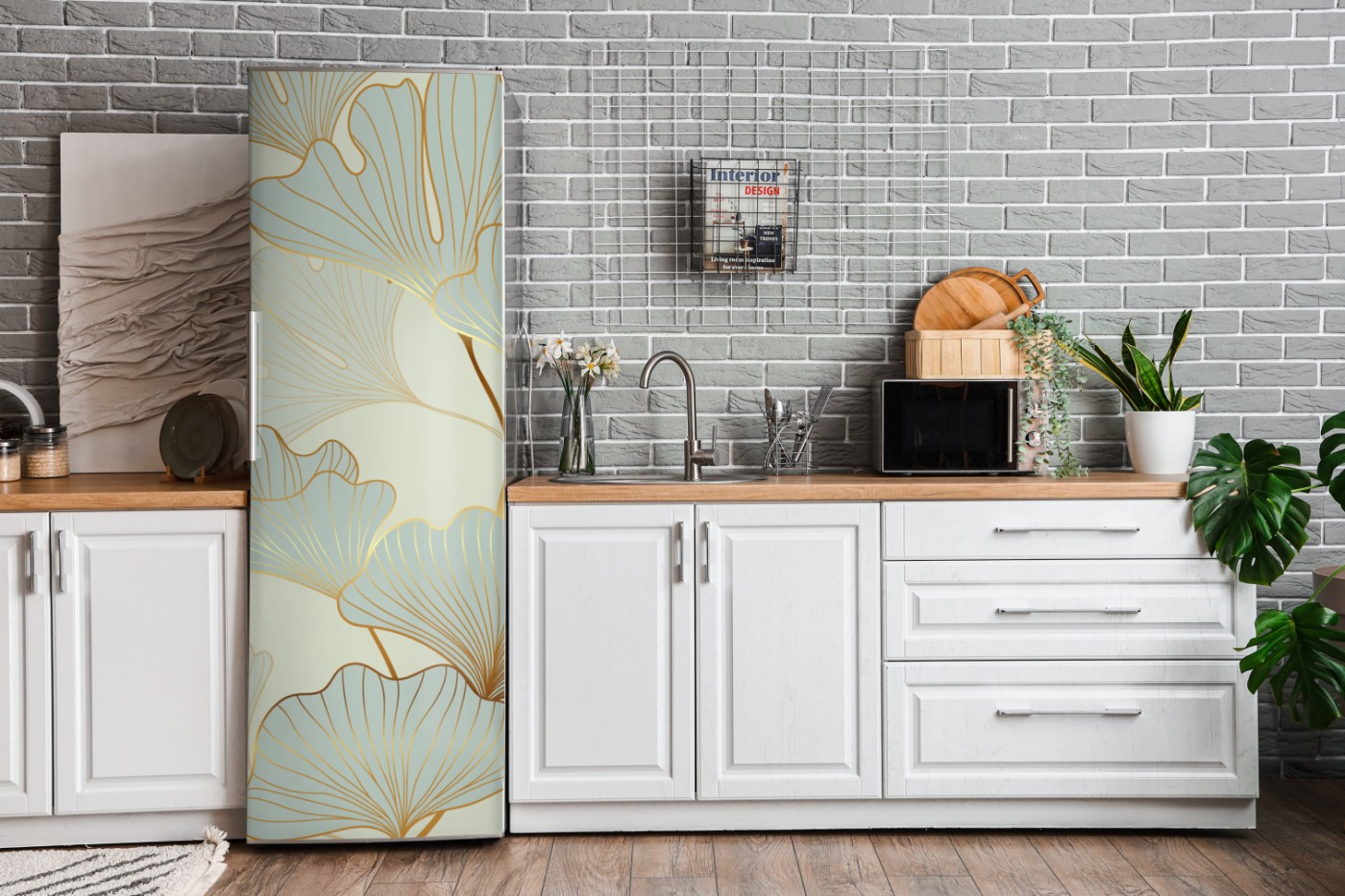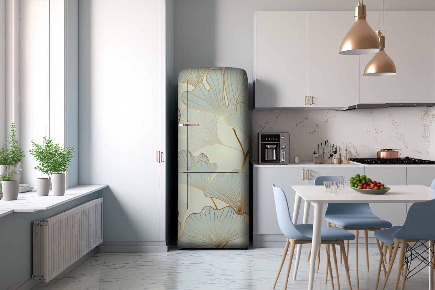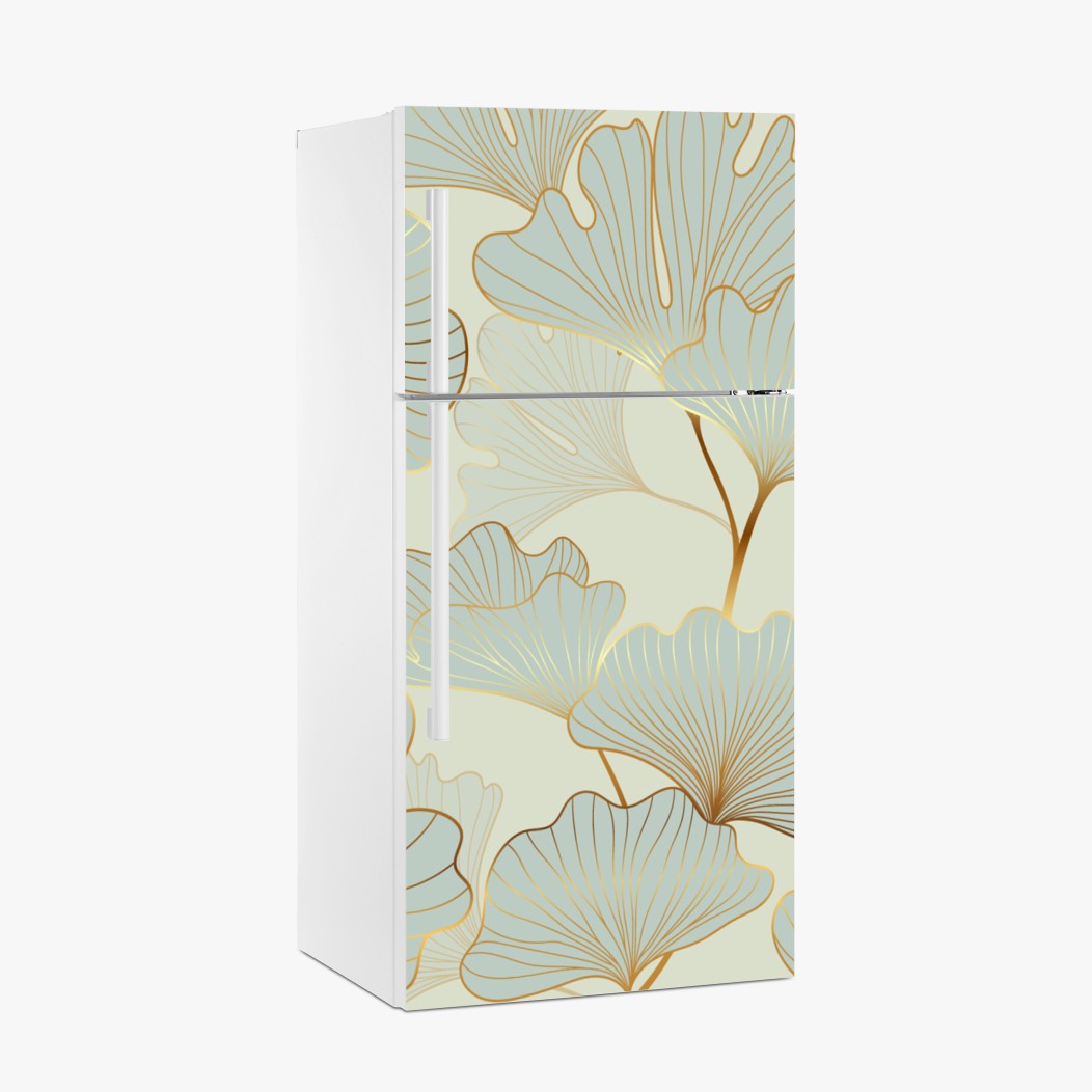 Naklejka na lodówkę Pastelowy wzór liści miłorzębu ze złotymi akcentami