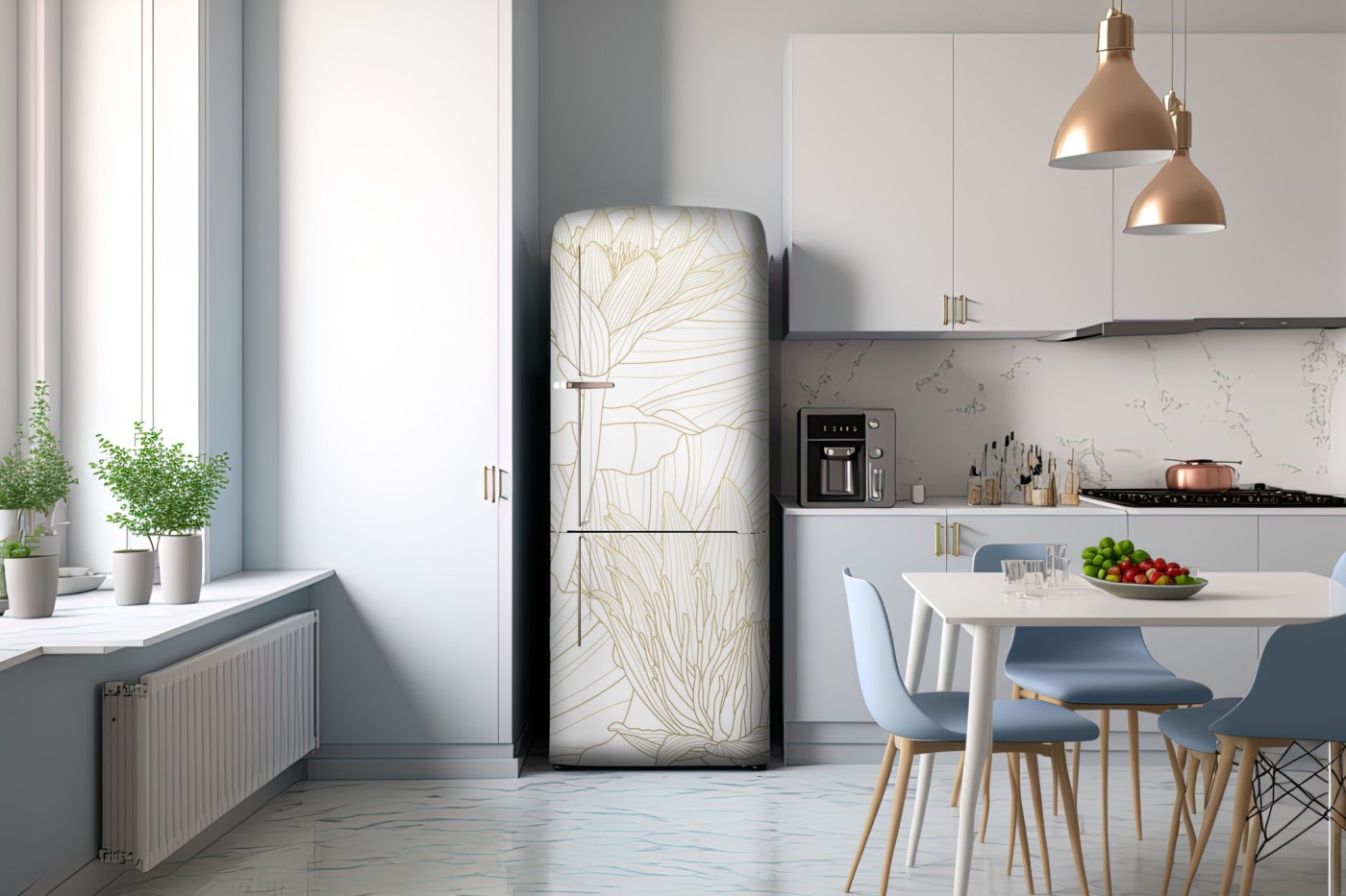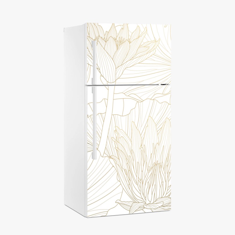 Naklejka na lodówkę Delikatny złoty rysunek kwiatowy