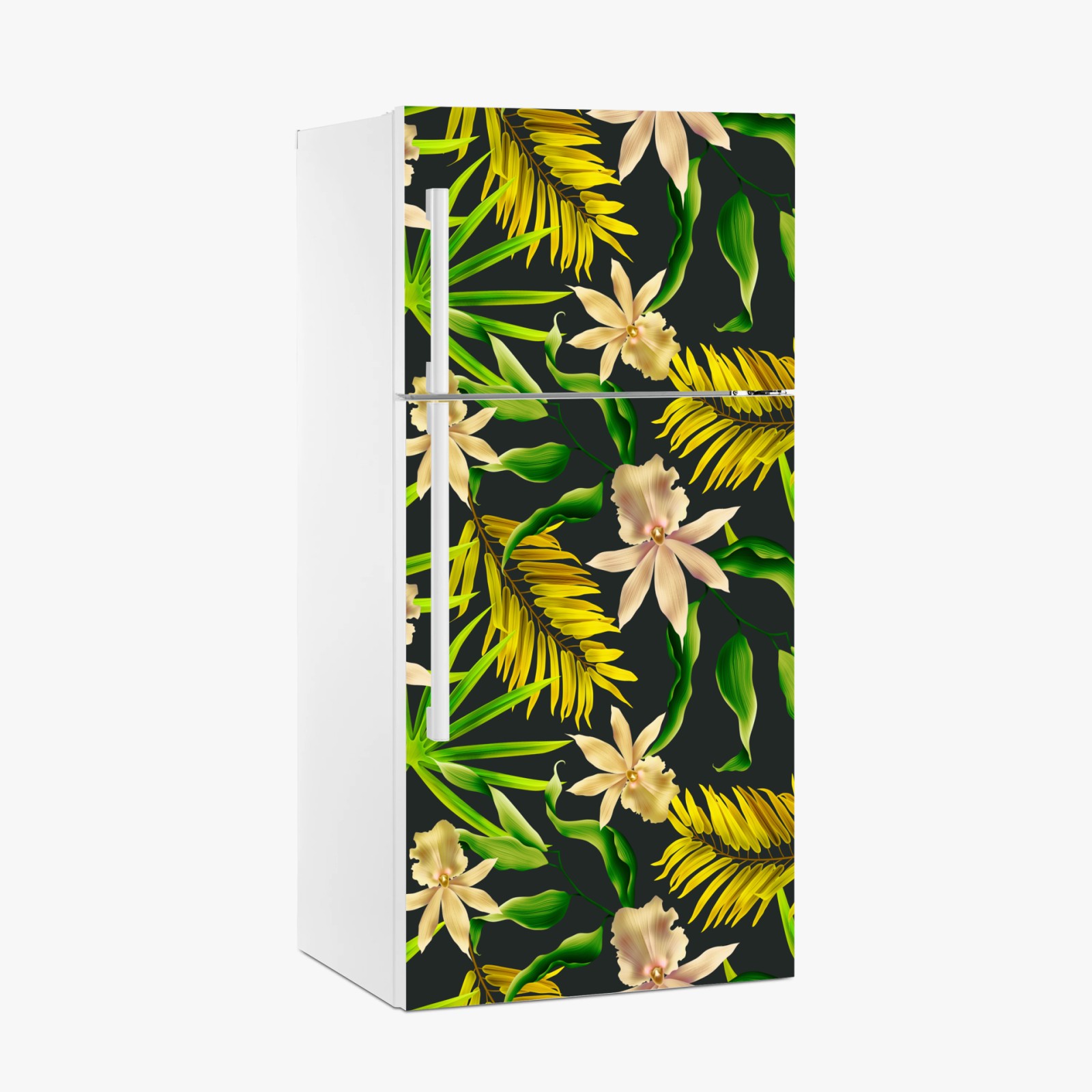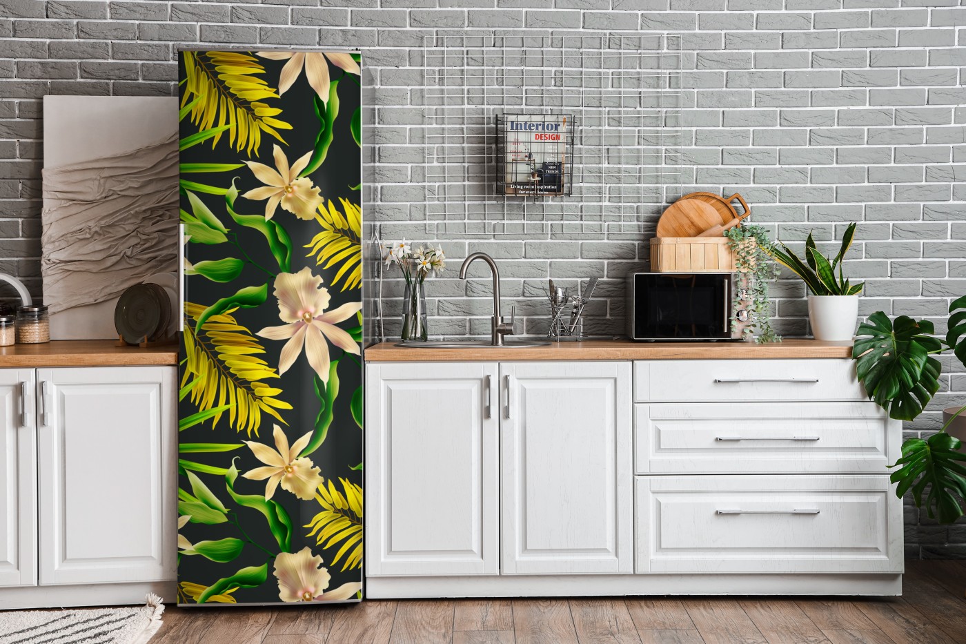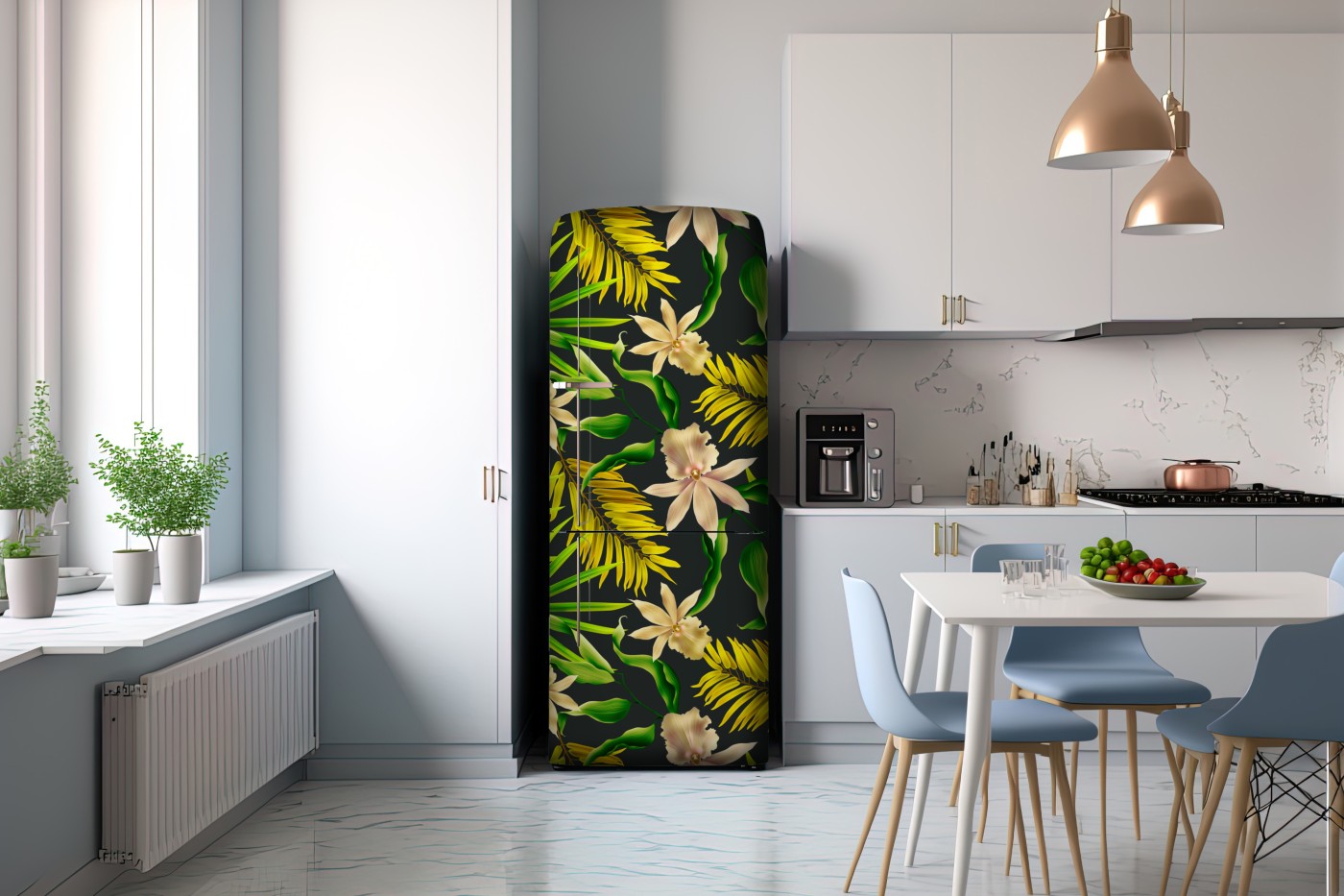 Naklejka na lodówkę Tropikalny wzór storczyków na ciemnym tle