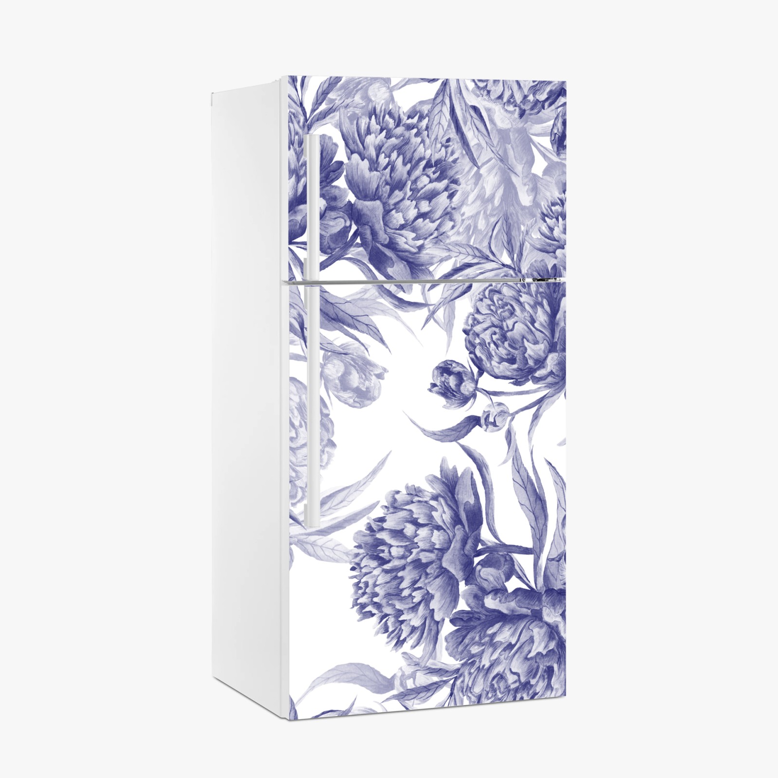 Naklejka na lodówkę Niebieskie peonie w stylu botanicznym