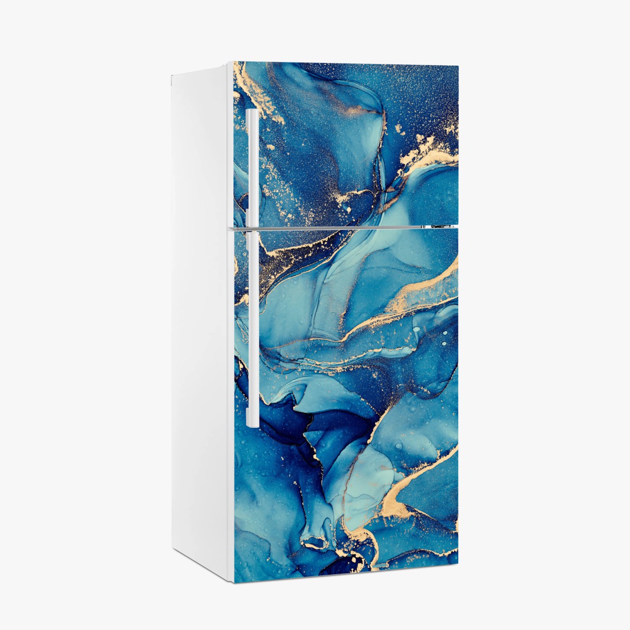 Naklejka na lodówkę Oceaniczny błękit i złote zawirowania