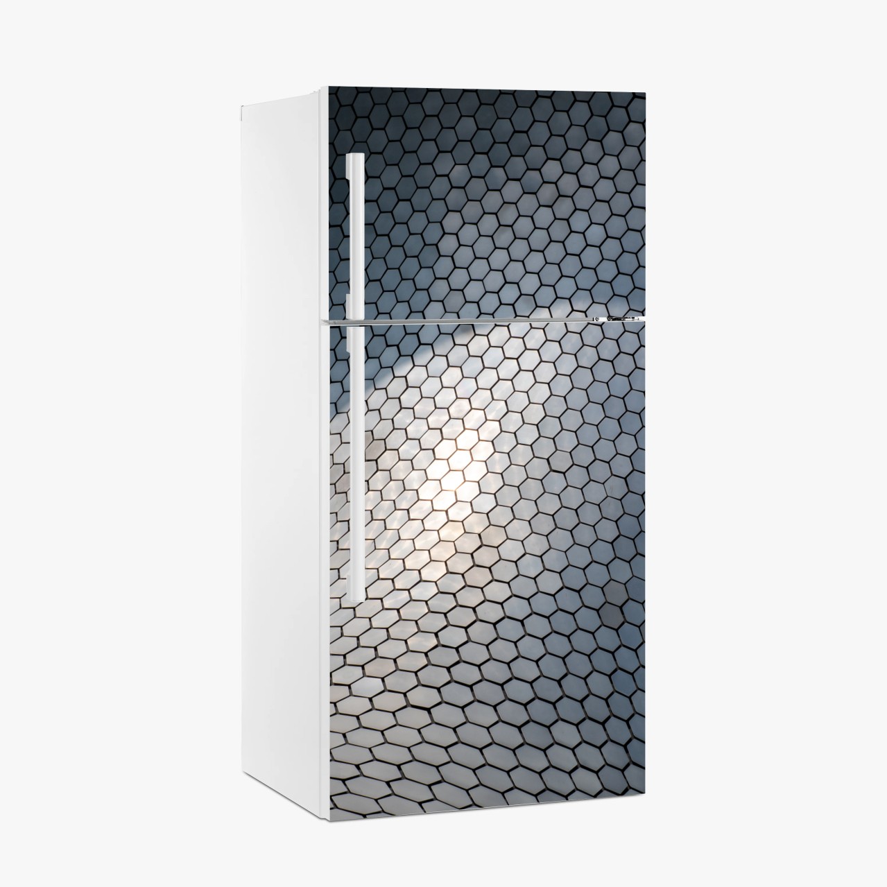 Naklejka na lodówkę Metaliczna heksagonalna elewacja geometryczna