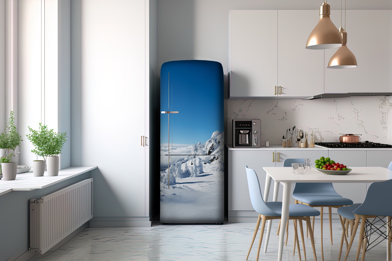 Poczuj ciszę górskiej zimy z krystalicznie czystym śniegiem i intensywnym błękitem nieba, które wprowadzą do wnętrza harmonię i przestrzeń.